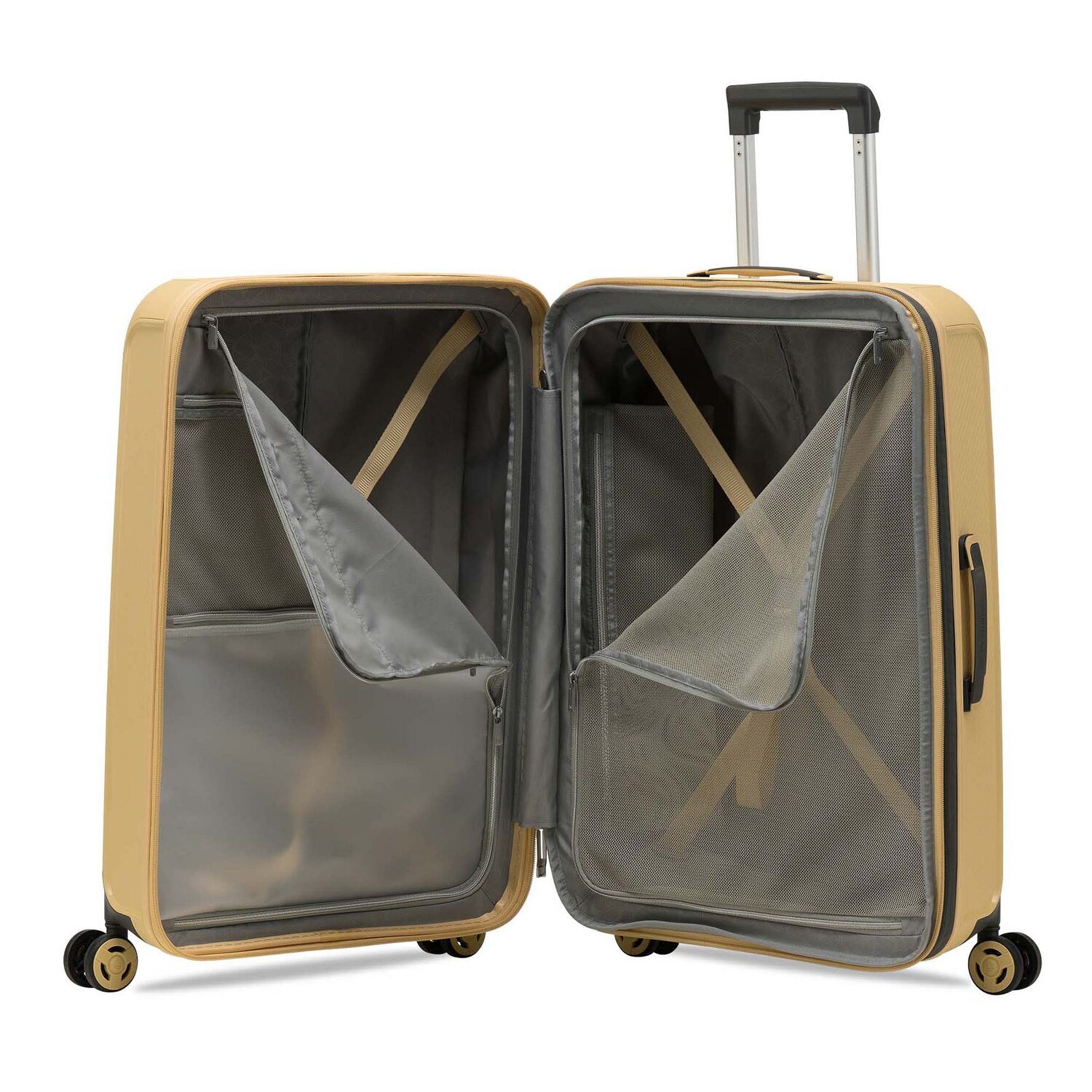 Wer sagt, dass Funktion und Stil nicht Hand in Hand gehen? Mit dem Eminent Aegis Hartschalenkoffer, ausgestattet mit 4 leichtgängigen Rollen, sind Komfort und Klasse stets an eurer Seite. Mit feinstem Polypropylen meisterhaft gearbeitet, sorgt dieser Koffer nicht nur für Haltbarkeit, sondern auch für eine beeindruckende Ästhetik. Innen erwartet euch eine harmonische Organisation mit Dehnfalte, Wäschefach, Kreuzpackgurt und diversen Fächern. Für eine nahtlose globale Reise ist das TSA-Schloss integriert. Außerdem punktet der Koffer mit durchdachten Details wie einem Tragegriff und einem geschickt eingearbeiteten Adressschild. Sichert euch dieses Reisejuwel - weil euer Abenteuer das Beste verdient. Dank der Dehnfalte lässt sich der Koffer auf eine Breite von 32 cm erweitern.