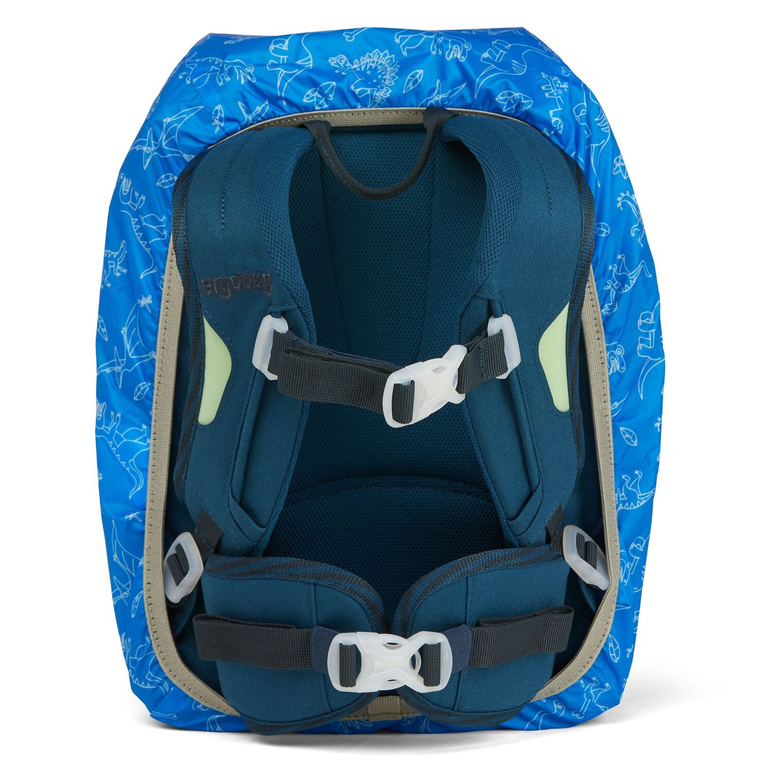 Regencape Mini Regenhülle passend für alle ergobag-mini Modelle. Die Hülle wurde aus PET-Flaschen hergestellt, ist wasser- und schmutzabweisend und schützt den Kindergartenrucksack vor starkem Regen.