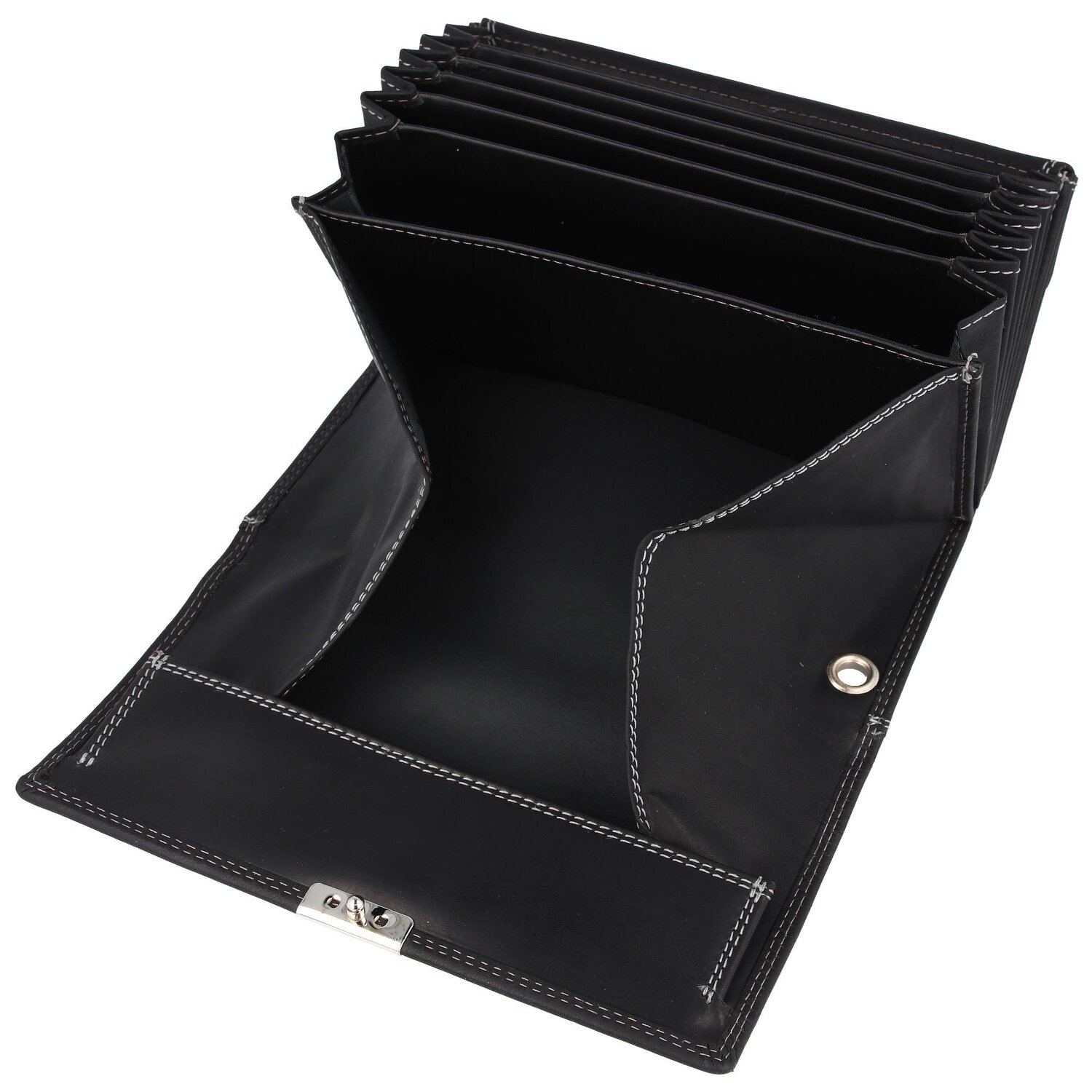 Angesagte, modische Kellnerbörse im Fächerstil und aus hochwertigem Rindsleder. Die Geldbörse ist dank der hervorragenden Verarbeitung, der Logo-Prägung und des klassischen Designs ein echter Hingucker und bietet zudem sehr viel Stauraum für Ihre Münzen, Geldscheine, Kreditkarten und Kassenzettel.