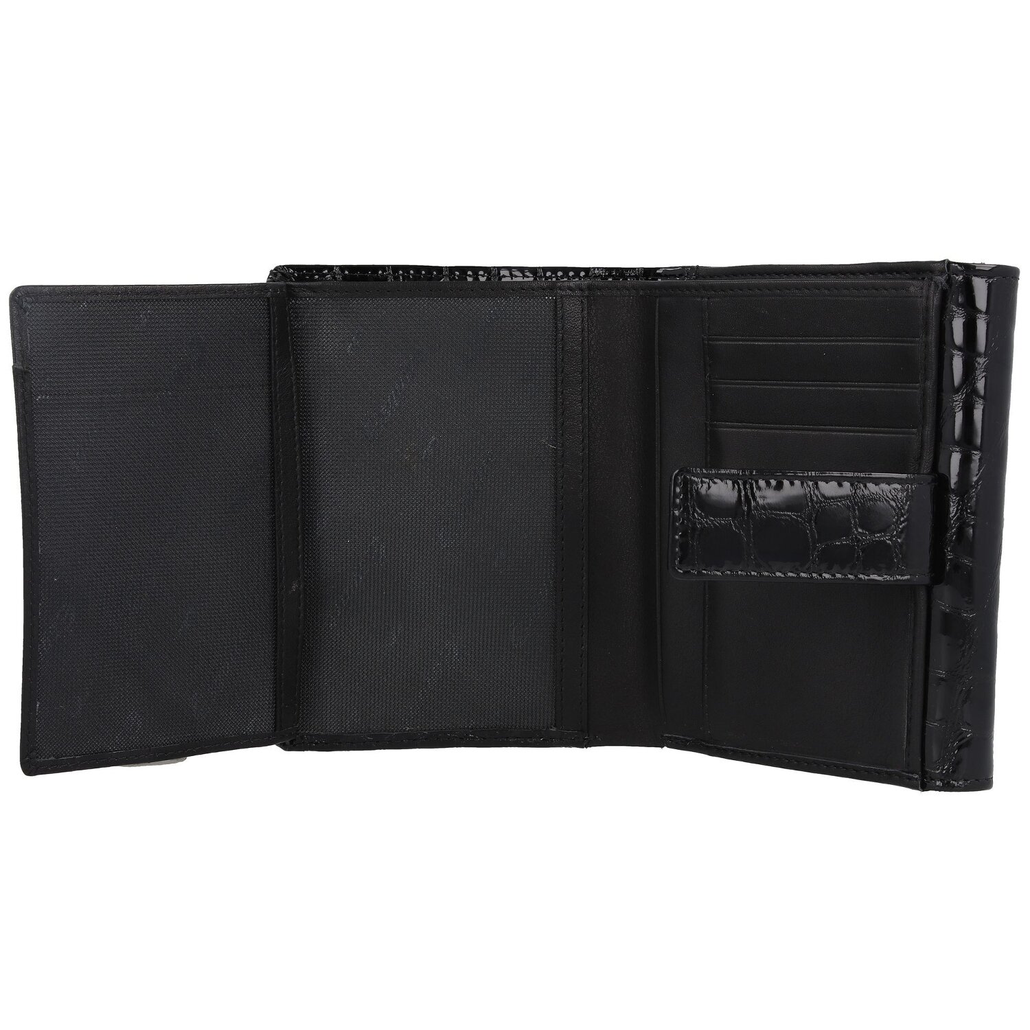 Stylische Geldbörse aus weichem Leder im Kroko-Stil. Zahlreiche Fächer für Scheine, Münzen und Karten bieten reichlich Platz. Die Börse hat eine RFID-Funktion zum Schutz vor Datendiebstahl.