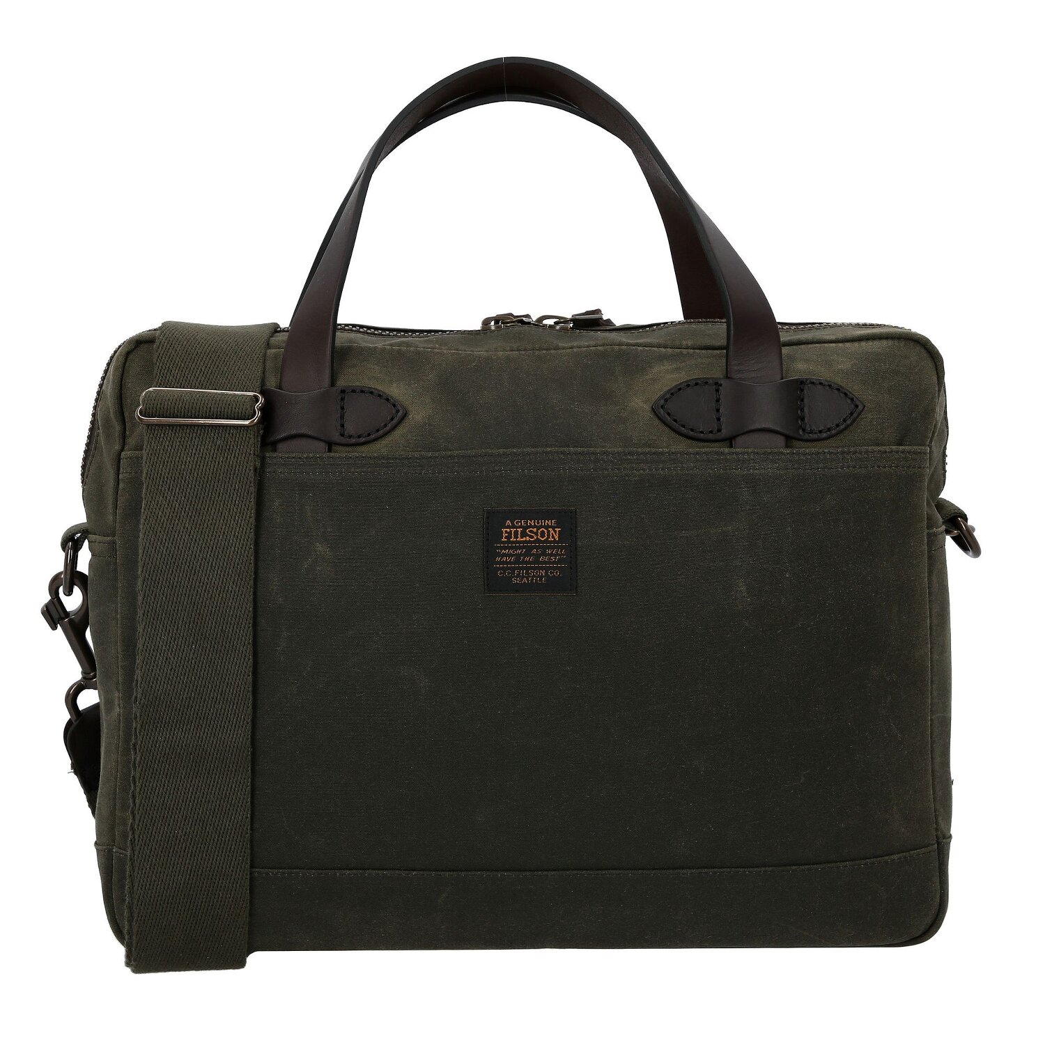 Erfüllt mit meisterhafter Fertigung präsentiert die Marke Filson ihre Serie Tin Cloth in Form einer exquisiten Aktentasche mit Laptopfach. Als unverzichtbares Accessoire für jeden Geschäftsmann und -frau brilliert diese Tasche durch ihre feine Struktur aus erstklassiger Baumwolle, die eine angenehme Haptik mit beständiger Robustheit vereint. Hervorheben lässt sich der Reißverschluss, der sich durch seine schnelle und unkomplizierte Bedienung auszeichnet und einen bequemen Zugang zu allen nötigen Utensilien und dem integrierten Laptopfach für Geräte bis zu 39 cm Bildschirmdiagonale bietet. Sowohl äußerlich als auch im Inneren gewähren separate Taschen zusätzlichen Stauraum. Abschließend erweist sich die Filson Aktentasche als perfekte Wahl für den modernen Geschäftswelt, die Funktionalität und Eleganz schätzt.