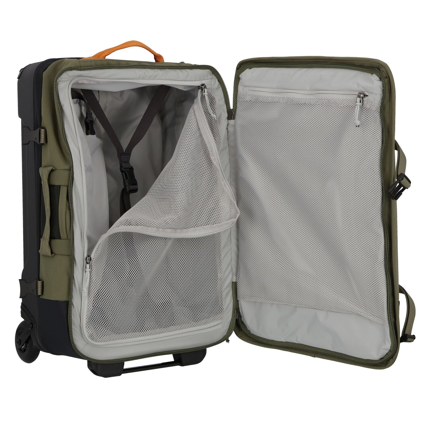 - Ausstattung: verstärkte Ecken, Tasche(n) innen, Tasche(n) außen, Reißverschlussfach, Kreuzpackgurt, Kompressionsriemen, Ausrüstungsschlaufe, arretierbarer Griff