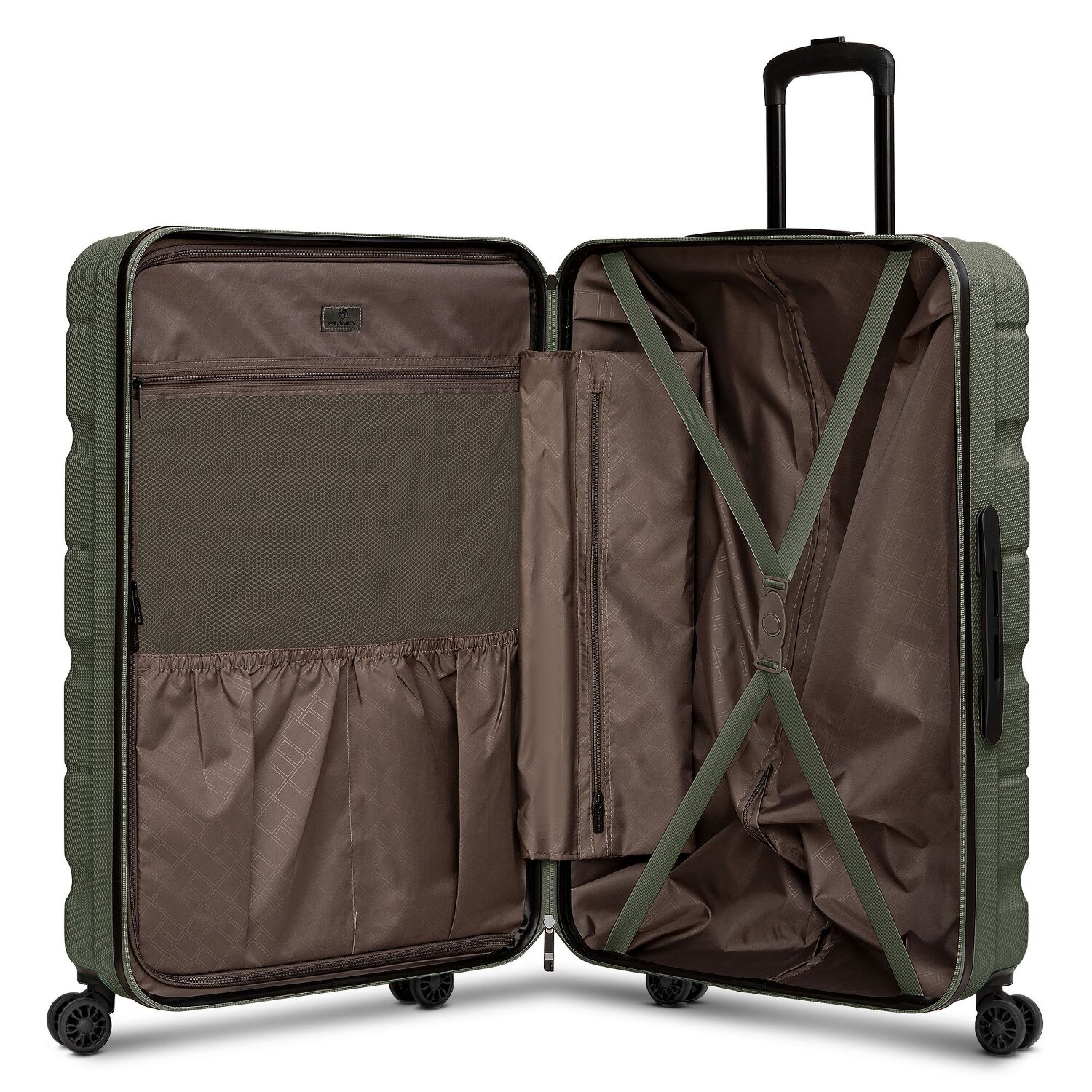 Schicker 4-Rollen Trolley von Franky aus ABS-Material. Er besitzt sowohl einen Tragegriff als auch ein arretierbaren Griff zum Einstellen auf Ihre Körperhöhe. Im Inneren befinden sich diverse Fächer zum sinnvollen Verstauen Ihres Gepäcks und ein Kreuzpackgurt sorgt dafür, dass alles an Ort und Stelle. Dank TSA-Zahlenschloss ist ihr Gepäckinhalt gut geschützt. Ihr neuer Begleiter auf Reisen. Dank der Dehnfalte lässt sich der Koffer erweitern.