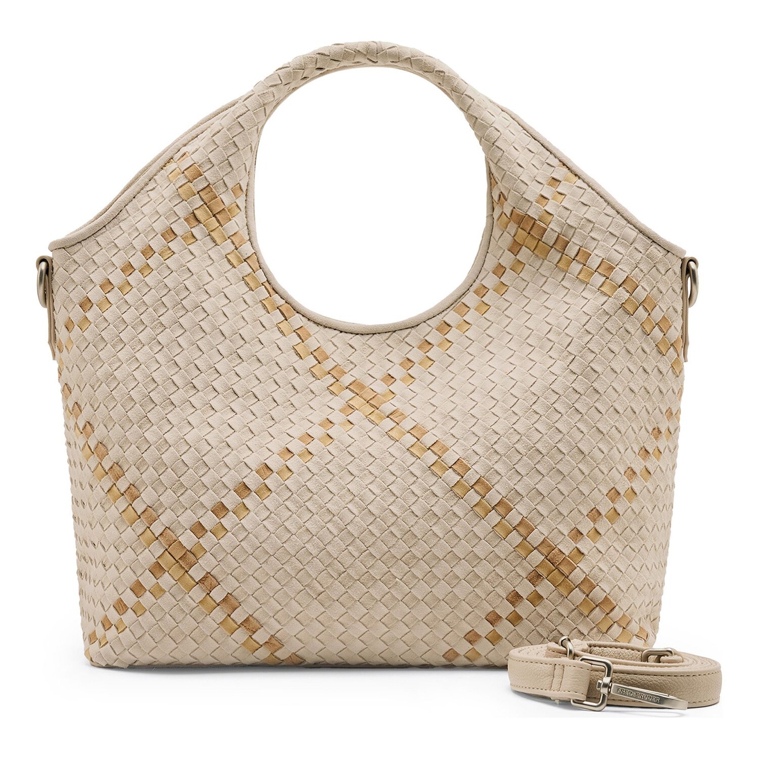 Dieser Hingucker von FredsBruder aus der Happy Weave Kollektion lässt stilvolle Damenherzen höher schlagen! Ein kühnes Design trifft auf die edle Optik von echtem Leder, das für anspruchsvollen Chic und Langlebigkeit steht. Die lässig-weibliche Handtasche punktet sowohl durch praktische Außen- und Innentaschen, ideal für die organisierte Aufbewahrung Ihrer Essentiellen. Ein sicherer und leicht zugänglicher Reißverschluss sowie ein zusätzliches Handyfach runden die Funktionalität dieses Schmuckstücks ab. Mit dem langen, modulierbaren und abnehmbaren Umhängeriemen lässt sich die Tasche ganz nach Belieben tragen und gibt Ihnen Flexibilität, egal, wo Sie hingehen. Entdecken Sie den perfekten Begleiter für jeden Anlass, und lassen Sie sich zum Kauf verleiten!