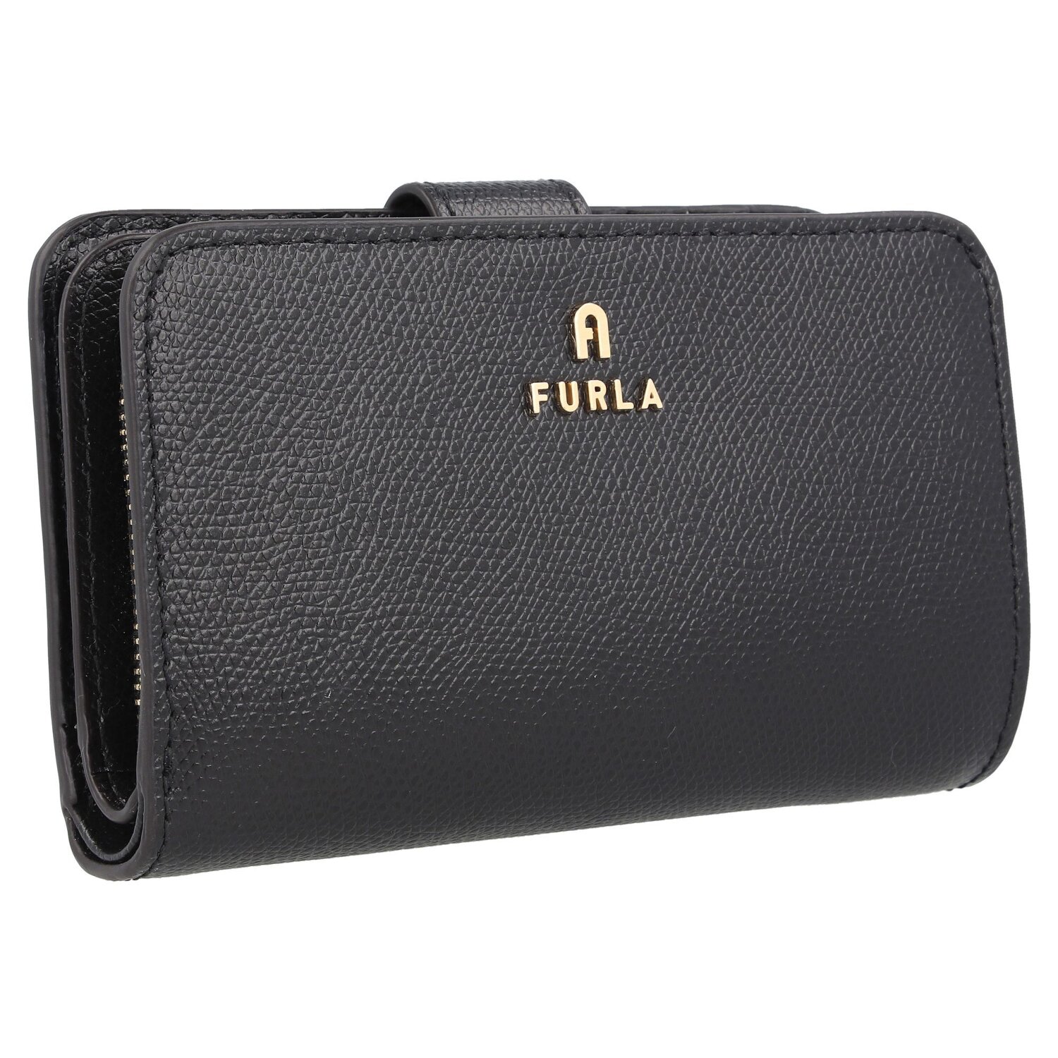 Edle Geldbörse der Marke Furla aus strukturiertem Leder mit goldfarbenen Metalldetails. Diese kleine Geldbörse bietet Platz für das Wichtigste und passt in fast jede Handtasche.