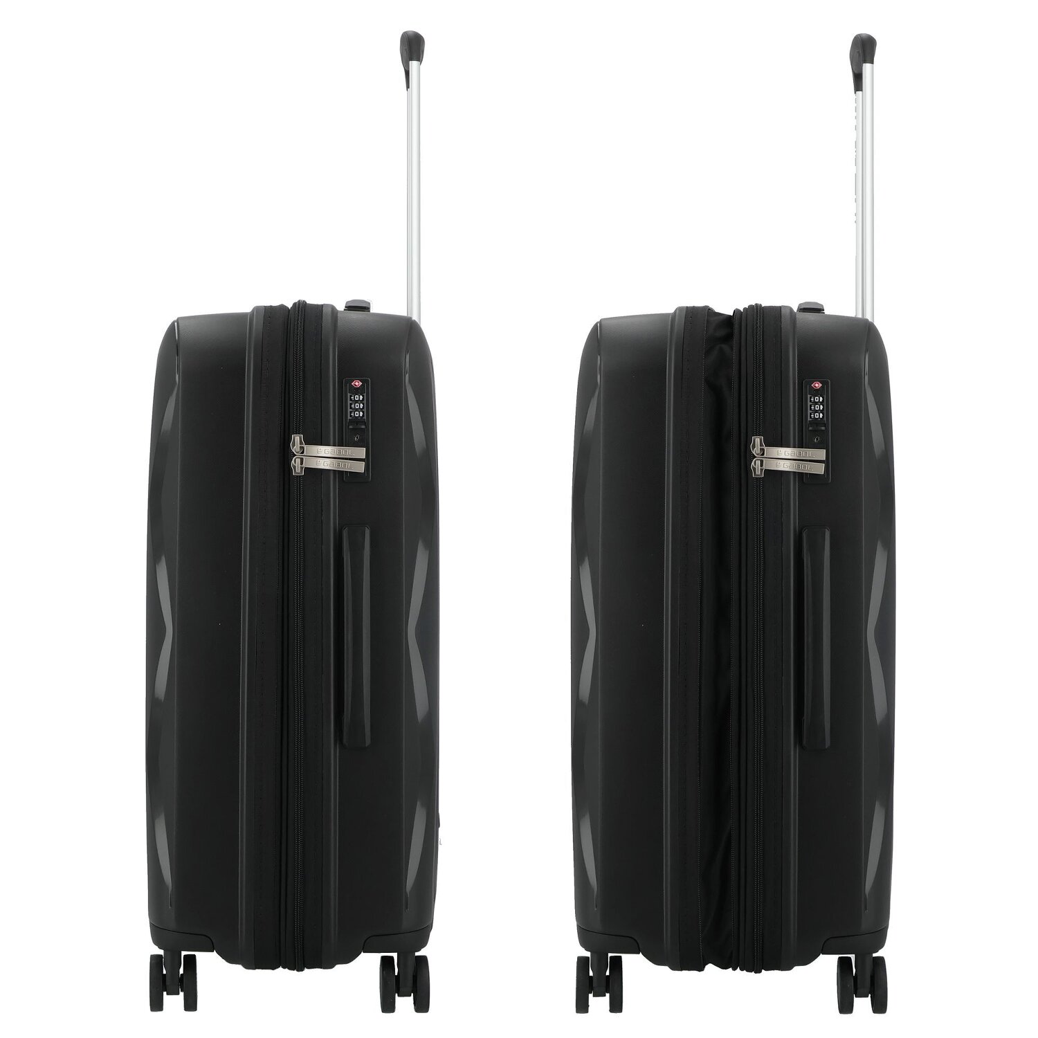 Bereit für grenzenlose Adventures? Der Infinity Hartschalenkoffer mit 4 Rollen von Gabol macht es möglich. Beindrucken wird er mit vielfältigen Fächern für Schuhe, Wäsche und mehr, während eine arretierende Teleskopstange leichte Navigation ermöglicht. Hergestellt aus widerstandsfähigem Polypropylen bietet dieser Koffer robuste Unterstützung, gegen jeden Reise-rote-Pille-Moment gewappnet! Spannender ist sein TSA-Schloss, das durch seine Universalakzeptanz Sicherheit auf globalen Reisen garantiert. Bemerkenswert ist auch der ergonomische Tragegriff, der für ein angenehmes Tragegefühl sorgt. Nicht nur der ideale Reisebegleiter, sondern auch ein Statement für Stil und Funktion. Infinite Abenteuer warten - auf was warten Sie? Dank der Dehnfalte lässt sich der Koffer auf eine Breite von 29 cm erweitern.