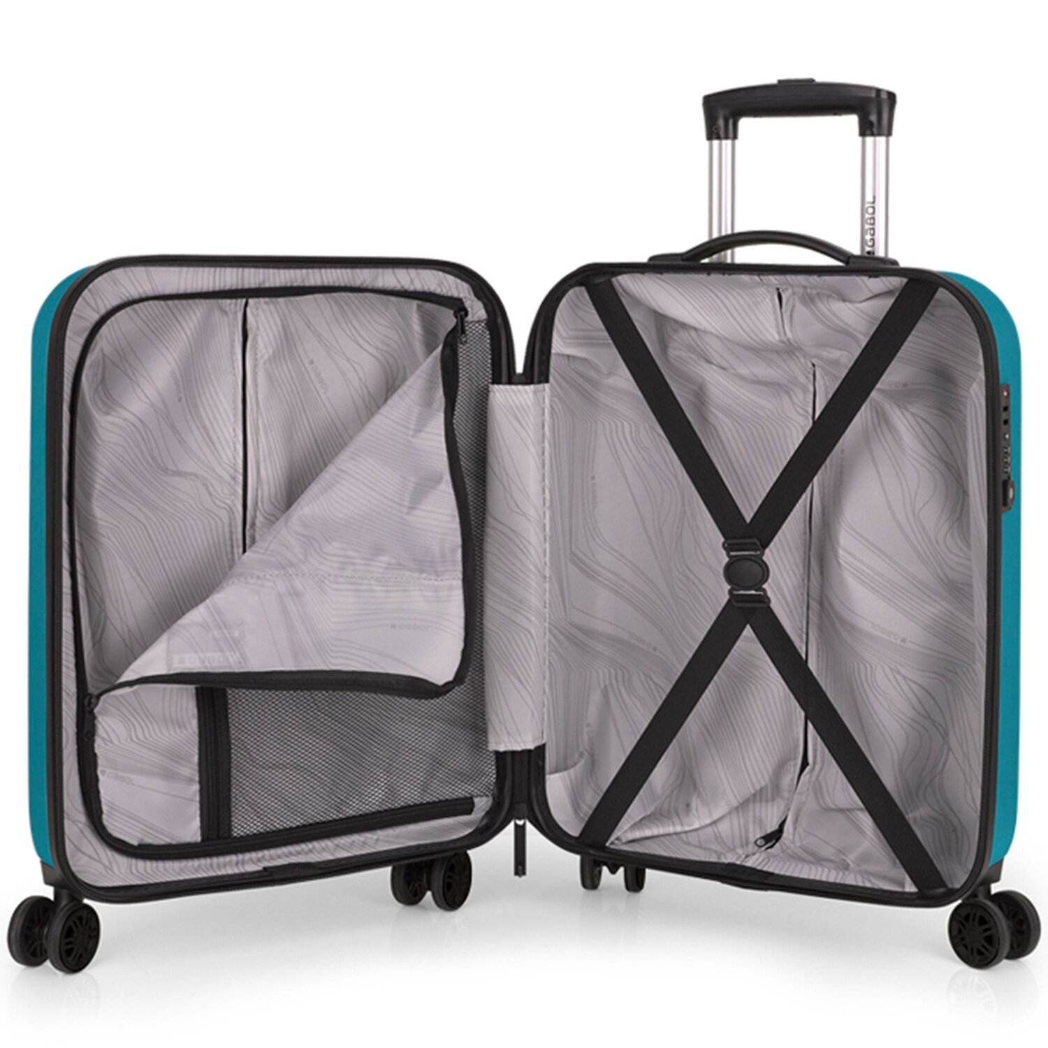 Robustes 4-Rollen Kofferset von Gabol mit TSA-Schloss und hochwertiger Innenausstattung. Mit seinen 4 leichtlaufenden Rollen sehen die Trolleys nicht nur sportlich aus, sondern sind auch ein idealer Begleiter für Reisen jeglicher Art. Ein zusätzlicher Kulturbeutel rundet das 4-teilige Set harmonisch ab.