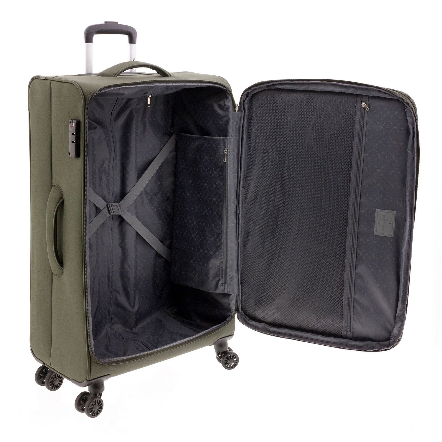 - Ausstattung: Wäschefach, Reißverschlussfach, Kreuzpackgurt, Dehnfalte, arretierbarer Griff