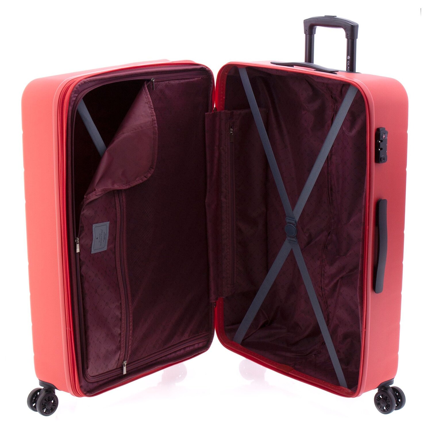 - Ausstattung: Wäschefach, Reißverschlussfach, Kreuzpackgurt, Dehnfalte, arretierbarer Griff