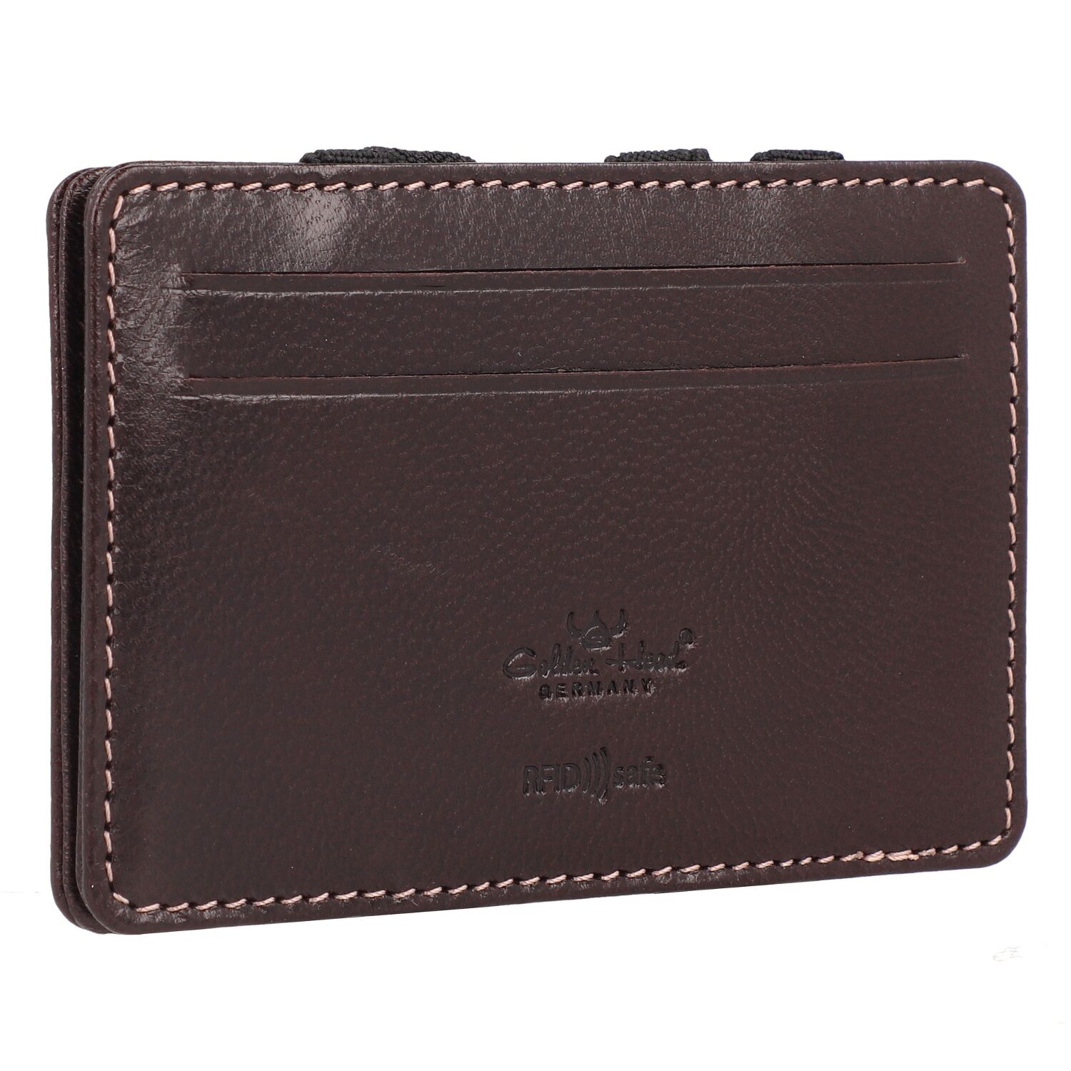 Das Bari Zauber Kreditkartenetui der Marke Golden Head bietet im kompakten Format Platz für mehrere Kreditkarten, sowie Gummibänder, in welchen sich Geldscheine wie von Zauberhand verstauen lassen.