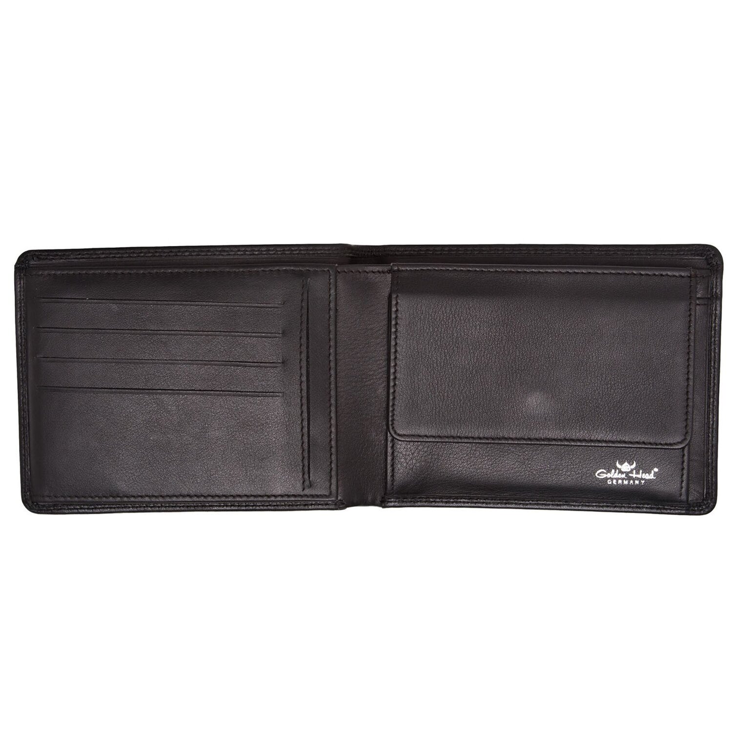 Golden Head Geldbörse aus glattem Rindnappaleder in feiner, leicht glänzender Narbenoptik. Mit Fächern für Karten, Münzen und Scheine, sowie RFID-Blocker gegen Datendiebstahl.