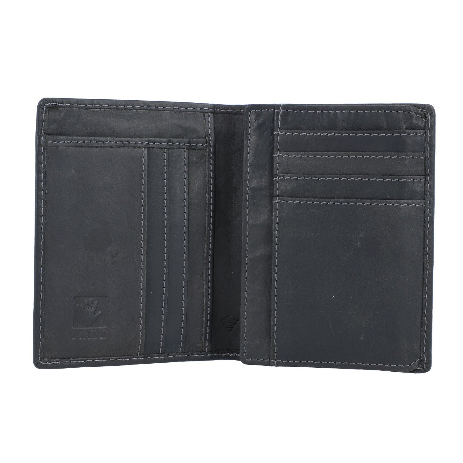 Praktisches Ausweisetui von Greenburry aus robustem Leder im angesagten Vintage-Look. Mit einem Sichtfenster, zahlreichen Kreditkarten- und Steckfächern, sowie RFID-Schutz gegen Datendiebstahl ausgestattet.