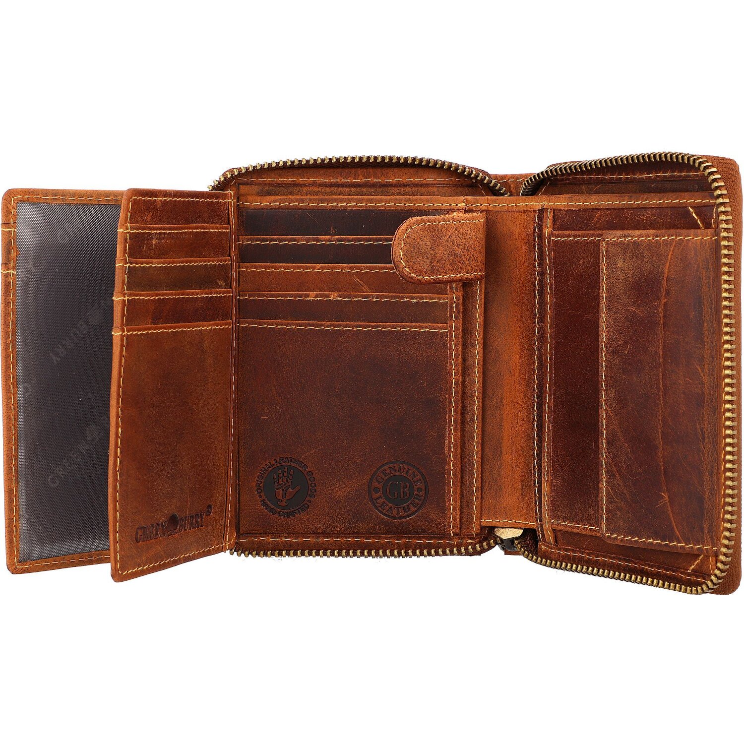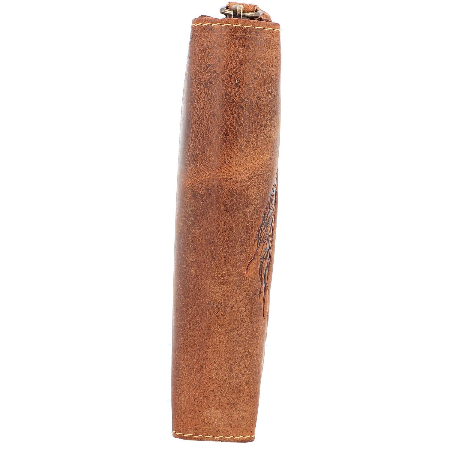 Wunderschöne Geldbörse von Greenburry aus Leder mit geprägtem Sternzeichen-Motiv auf der Frontseite. Der Geldbeutel bietet reichlich Platz für Kreditkarten, Scheine und Münzen.