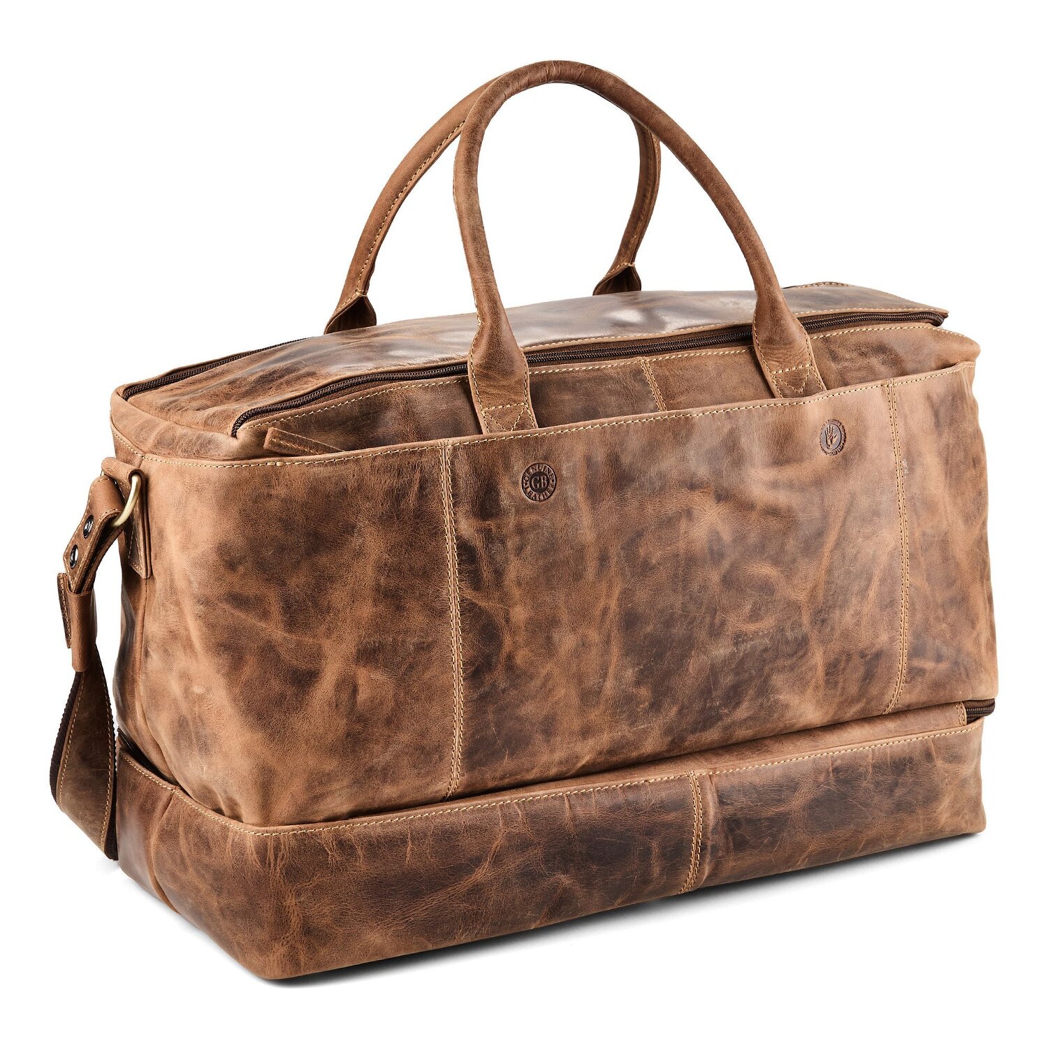 Begegnen Sie der Welt mit Stil und bemerkenswerter Qualität! Unsere Greenburry Vintage Reisetasche Weekender ist der Inbegriff dafür. Mit ihrem außergewöhnlichen Design, gepaart mit praktischen Merkmalen wie Reißverschlussfach und Außentaschen, stellt sie das perfekte Gleichgewicht zwischen Schönheit und Nützlichkeit dar. Liebe zum Detail offenbart sich in den sorgfältig platzierten Bodennägeln für zusätzlichen Schutz. Das exquisite Leder bringt eine einzigartige Balance von Weichheit und Stärke in dieses Statement-Stück ein, das jede Reise bereichert. Die Greenburry Vintage Reisetasche Weekender - eine Ode an den stilsicheren Globetrotter. Machen Sie sie zu Ihrem treuen Reisebegleiter.