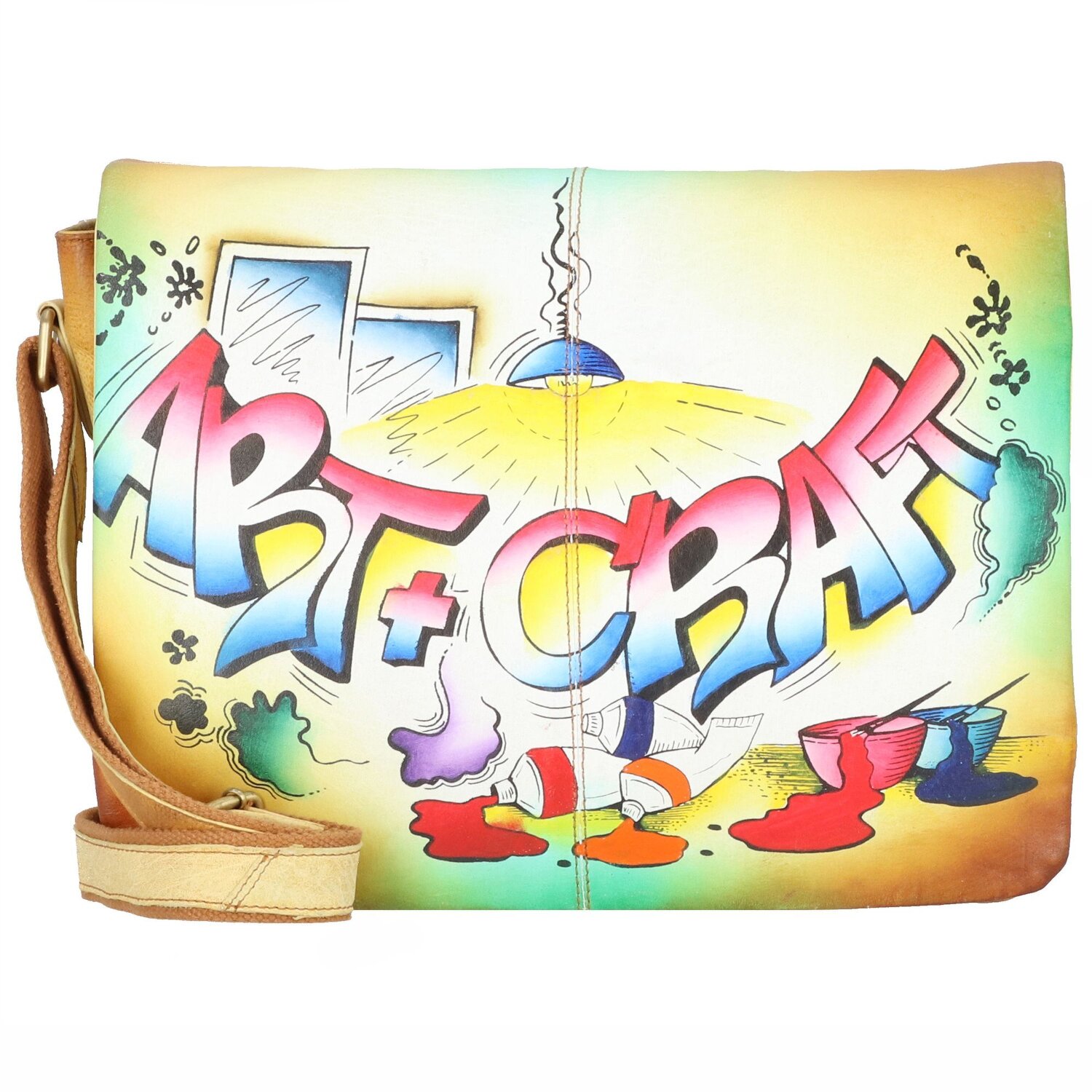 Außergewöhnlich und besonders präsentiert sich die Messenger Tasche aus hochwertigem Leder von Greenland Nature aus der Art & Craft Serie. Durch die Handbemalung wird jedes Stück ein echtes Unikat. Im Hauptfach befindet sich ein Steckfach, Reißverschlussfach und Stiftelaschen sowie Kartenfächer. Ein Nebenfach und ein Reißverschlussfach auf der Rückseite sorgen für zusätzlichen Stauraum.