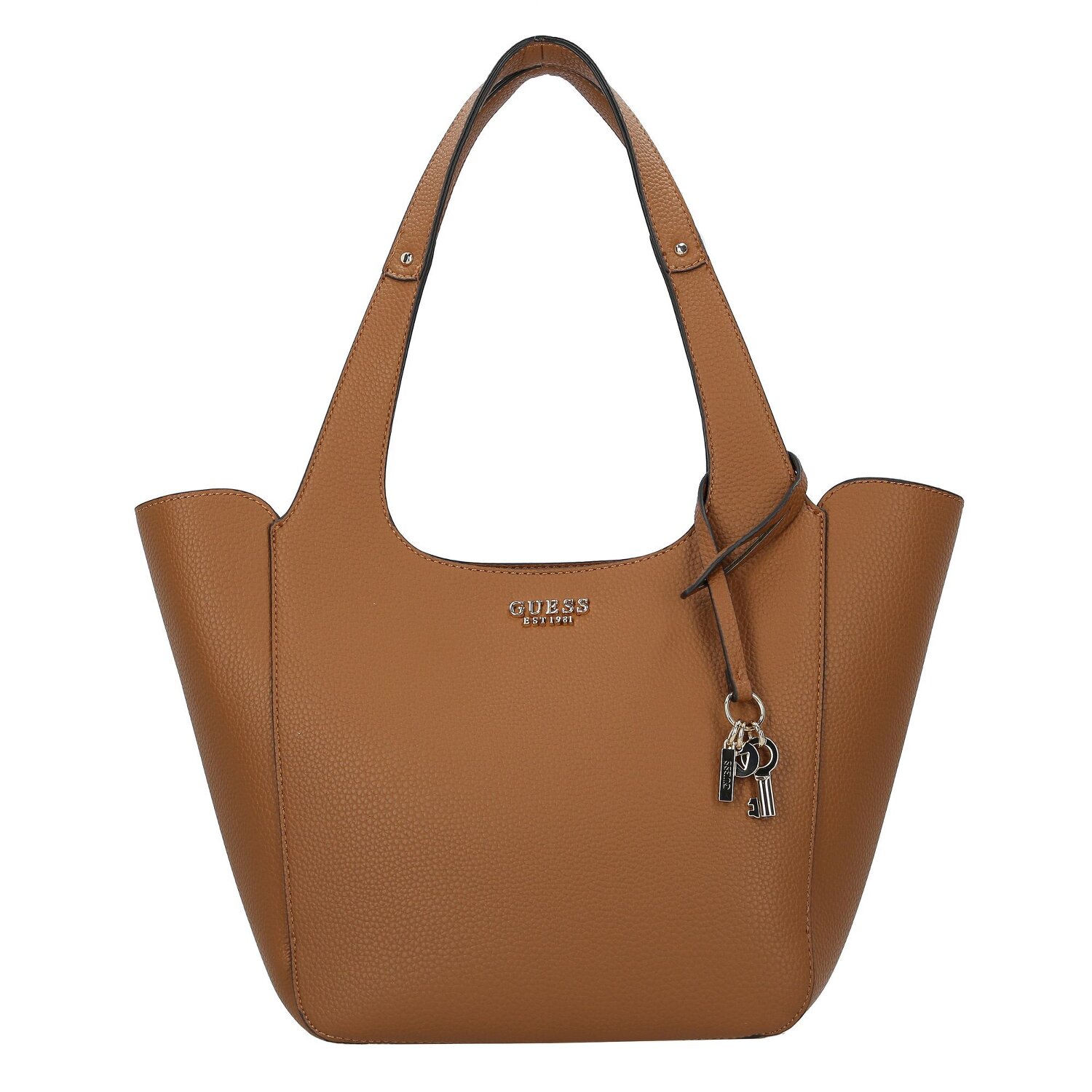 Eine Shoppertasche, bei der man nicht nur die exklusive Guess-Markenqualität spürt, sondern auch das attraktive Calista-Design in jeder Naht sieht. Mit ihren Polyurethanmaterialien hält diese Tasche jedem Alltagstest stand, während die magnetischen und Reißverschlussverschlüsse ein sicheres und praktisches Verstauen gewährleisten. Zwei geräumige Hauptfächer und zusätzliche Innentaschen sind bereit, Ihre unverzichtbaren Gegenstände aufzunehmen. Noch besser, eine herausnehmbare Tasche sorgt für mehr Flexibilität. Mit dem mittellangen Umhängeriemen kann man diese Tragetasche nach Belieben anpassen. Schick, widerstandsfähig und perfekt für die moderne Frau, macht man mit dieser Tasche alles richtig! Maße: Schultertasche 45 cm x 14 cm x 25 cm 0,59 kg; Handtasche 26 cm 14 cm 25 cm 0,17 kg