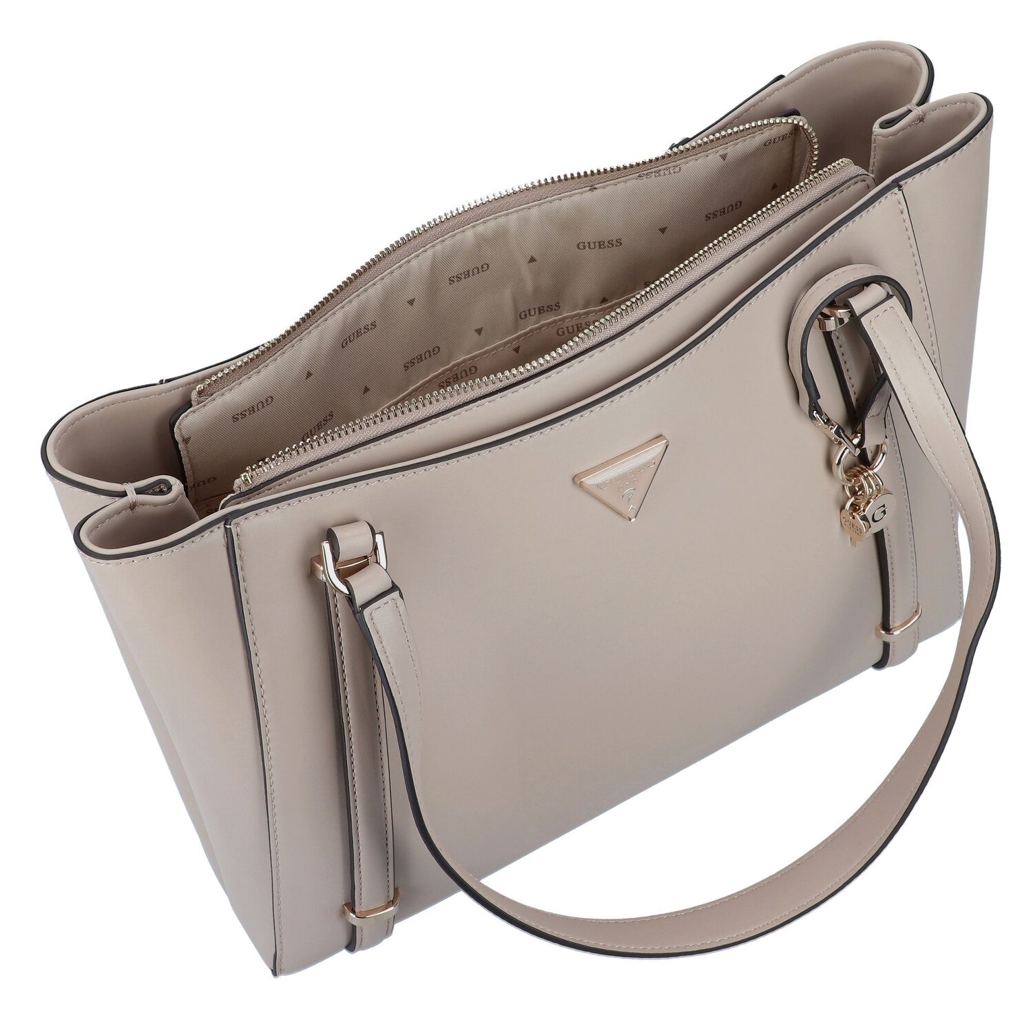 Die Guess Daryna II ist nicht nur eine Shoppertasche, sondern ein Alltags-Accessoire für die moderne Frau. Hergestellt aus widerstandsfähigem Polyurethan, bietet sie genug Stauraum und Komfort mit ihren vielfältigen Taschen innen und außen sowie einem zusätzlichen Handyfach. Der praktische Reißverschluss sorgt für sichere und schnelle Handhabung, während der Raumteiler und Bodennägel den Einsatz noch einfacher machen. Ob über die Schulter oder in der Hand trägt, der mittellange Hauptgurt und der Umhängeriemen passen sich perfekt an ihre Bedürfnisse an. Vertrauen Sie auf das Qualitätsversprechen von Guess und fügen Sie Ihrem Alltag einen Hauch von Stil hinzu.