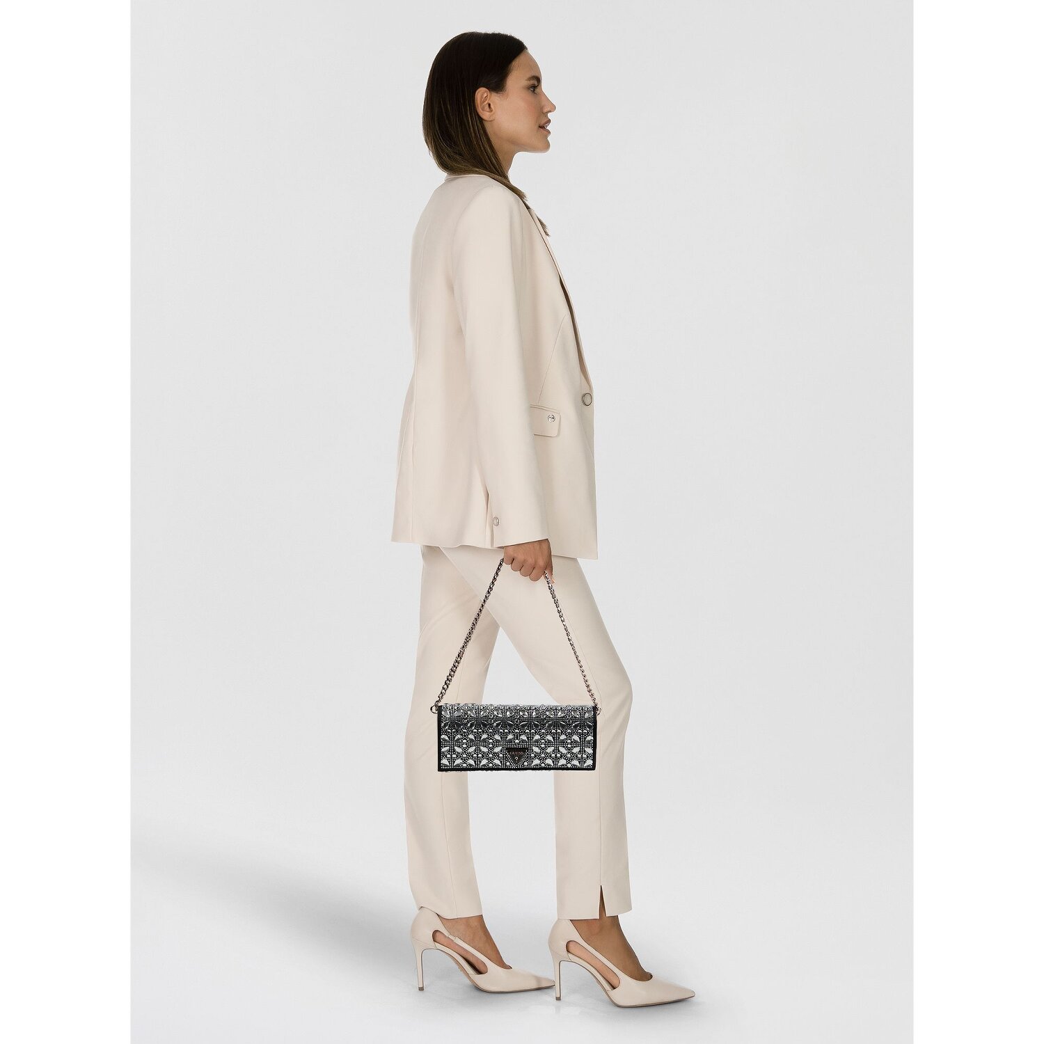 Erschaffen Sie einen atemberaubenden Look mit der Guess Elsie Clutch. Ausgestattet mit einem passenden Schulterband, kombiniert diese Tasche Mode mit Funktion in erstaunlicher Weise. Im Inneren versteckt sich eine zusätzliche Tasche, ideal zum Verstauen kleinerer Gegenstände. Der unkomplizierte Magnetverschluss sichert Ihr Hab und Gut, während das robuste, straff strukturierte Polyurethan eine Mischung aus Haltbarkeit und stilvollem Glanz bereitstellt. Ob als Handtasche genutzt oder mit dem medium langen Schulterband lässig umgehängt, sie bietet vielfältige Trageoptionen. Lassen Sie Ihre Garderobe mit der Guess Elsie Clutch in neuem Glanz erstrahlen.