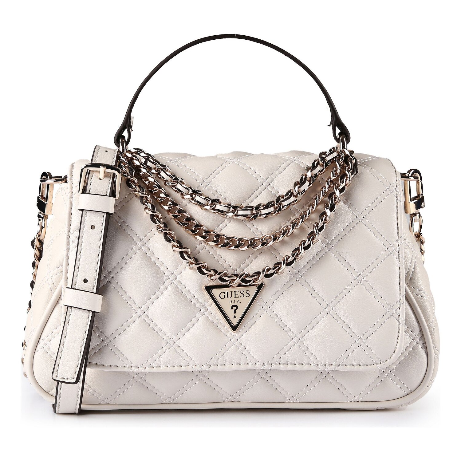Stilvoll, glamourös und funktional - die Giully Handtasche von Guess ist der ideale Begleiter für die moderne Frau. Ein geschmeidiger Traum aus Polyurethan, nicht nur optisch beeindruckend, sondern auch robust und langlebig. Ihre Habseligkeiten finden sich sicher vereint in wohlorganisierten Innenfächern und geschützt hinter einem praktischen Magnetverschluss. Ganz gleich, ob in der Hand getragen oder casual über die Schulter geschwungen, dank abnehmbarem Umhängeriemen und kurzem Hauptgriff sind variantenreiche Trageoptionen gewährleistet. Verwöhnen Sie sich mit dieser adretten Kreation, die den optimalen Mix aus Schick und Komfort bietet.