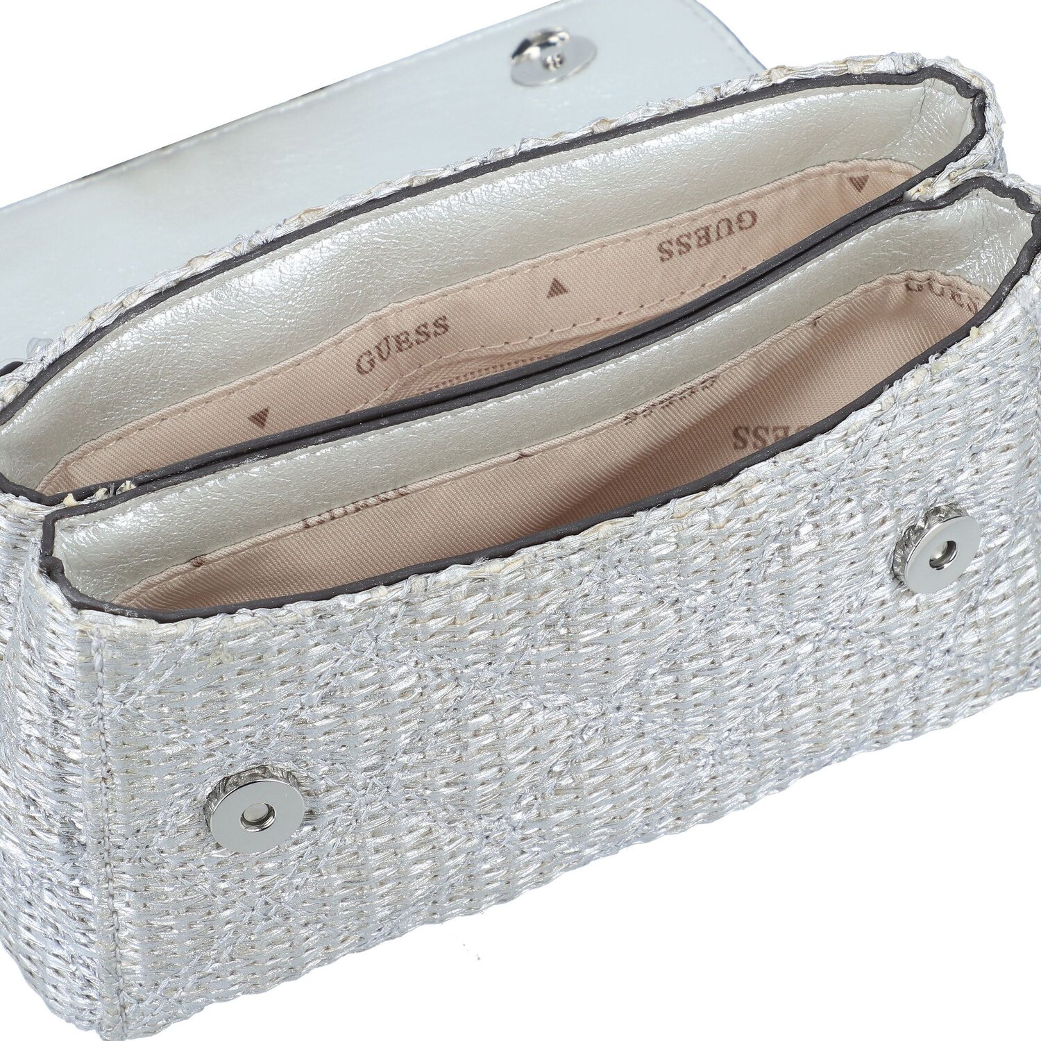Die Giully II Mini Bag von Guess überzeugt durch ihre kreative Prägnanz, die sowohl stilbewusst als auch alltagstauglich ist. Hergestellt aus strapazierfähigem Papiermaterial, verspricht diese kleine Tasche den perfekten Mix aus Funktionalität und fashion-Statement. Ein benutzerfreundlicher Magnetverschluss bietet schnellen und problemlosen Zugang zu Ihren Essentials, während ein flexibel einstellbarer, aber auch fixierbarer Umhängeriemen für Tragevielfalt und Komfort sorgt. Das Interieur, durchdacht mit Raumteilern, ermöglicht organisiertes Verstauen kleiner Gegenstände. Damit lädt die Giully II Mini Bag dazu ein, Stil mit Praktikabilität zu kombinieren. Überzeugen Sie sich selbst und bringen Sie einen neuen Schwung in Ihre Accessoire-Kollektion.
