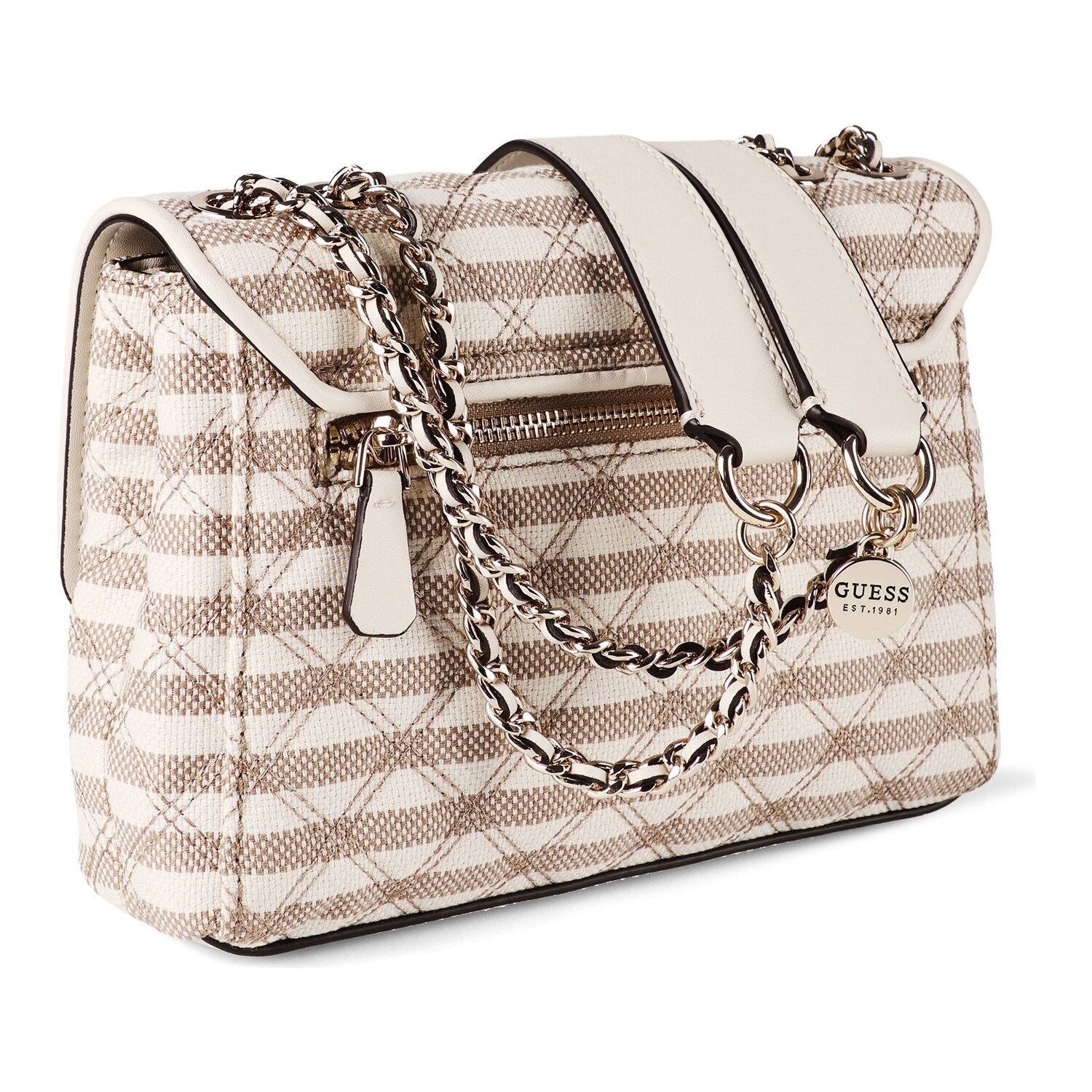 Treten Sie in die Welt von Guess mit der Giully II Umhängetasche ein - eine Stilproklamation, die sowohl Sinn für Schick als auch Zweckmäßigkeit verkörpert. Speziell entworfen für die moderne Frau, bietet sie eine Tasche im Außenteil, ein Reißverschlussfach und Kreditkartenfächer zur organisierten Unterbringung von Essentials. Zwei geräumige Hauptfächer überraschen Sie mit großzügigem Stauraum. Hergestellt aus widerstandsfähigem und leichtem Polyester, gewährleistet diese tasche alltagstauglichkeit und Langlebigkeit. Praktische Bodennägel sorgen für Standfestigkeit, während der Magnetverschluss leicht zugänglich ist und Ihre Habseligkeiten sicher hält. Der Hauptriemen ist längenverstellbar und ermöglicht das bequeme Tragen über der Schulter. Entdecken Sie die Vielseitigkeit und den Komfort, den diese Tasche zu bieten hat. Machen Sie sie zu Ihrem nächsten besten Accessoire.