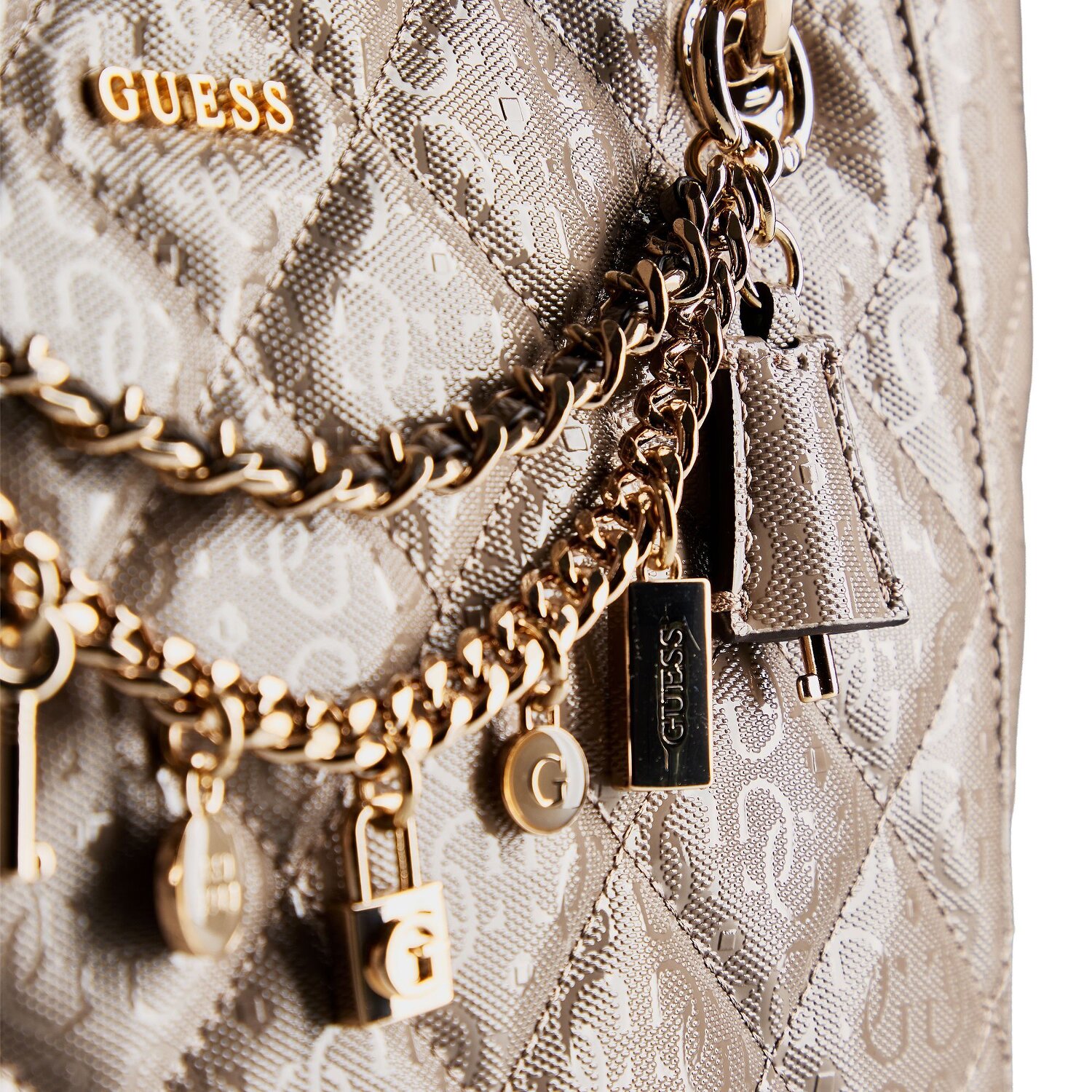 Sprühend vor Eleganz und Funktionalität präsentiert sich die Guess Libby Shoppertasche. Sie hat einen sattelfesten Miedium-Hauptriemen inklusive Umhängeband, der ihre Benutzerfreundlichkeit unterstreicht. Das herrliche Polyurethanmaterial, aus dem diese Damenschönheit gefertigt ist, verleiht ihr einen Hauch von Klasse und Beständigkeit. Die Libby Shoppertasche bietet ein geräumiges Reißverschlussfach, angereichert durch eine trendige Befestigungskette. Der praktische Reißverschluss behält Ihre Wertsachen sicher und outet sich bei Bedarf als schnell zugänglich. Die Tasche ist auch mit Bodennägeln ausgestattet, die für zusätzliche Robustheit sorgen. Steigern Sie Ihr Stilquotient mit dieser Guess Shoppertasche - ein Must-Have für jede moderne Frau.