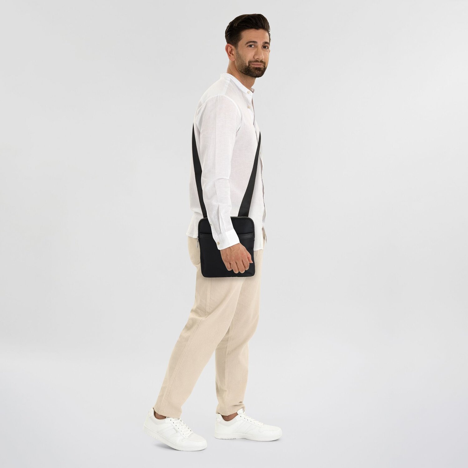 Modern, modisch und immer passend - die Milano Umhängetaschen Serie von Guess gehört zur essentiellen Herrengarderobe. Die durchdachte Aufteilung bietet sowohl innen als auch außen Taschen, in die sich sämtliche Alltagsutensilien ordnen lassen. Das Highlight stellt das Handyfach dar, das durch den Reißverschluss zugänglich und doch geschützt ist. Aus robustem Polyamid gefertigt, verspricht diese Tasche langanhaltende Qualität und Widerstandsfähigkeit. Dabei ist der Umhängeriemen nicht nur abnehmbar, sondern sogar in der Länge verstellbar. So kann die Tasche auf die individuell gewünschte Länge eingestellt werden. Lassen Sie sich von Guess begeistern - die Milano Umhängetasche ist ein unverzichtbarer Begleiter!