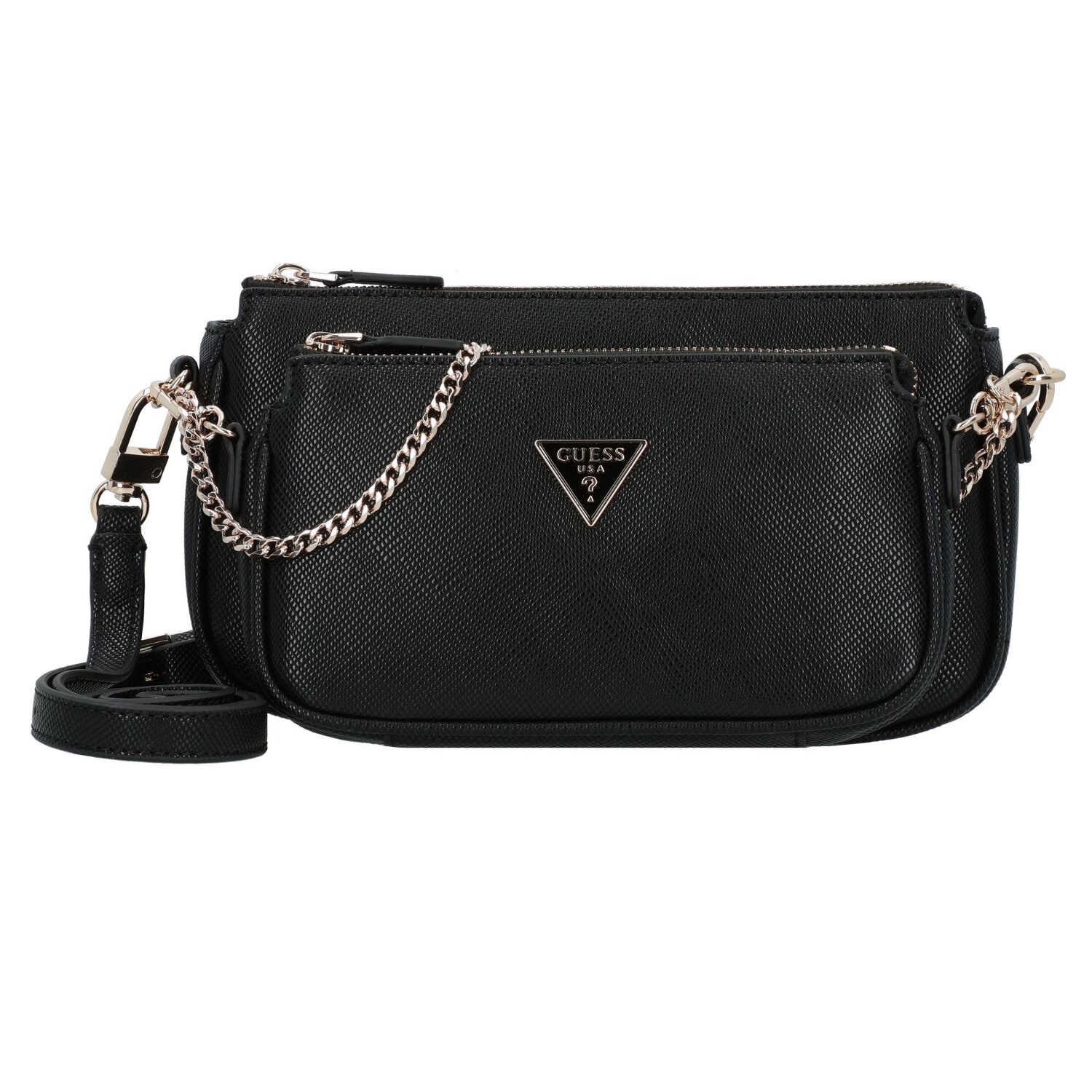 Erleben Sie Eleganz auf dem neuen Level mit der "Noelle II"-Schultertasche von Guess. Diese Damen-Schultertasche bietet Funktionalität mit ihrem feinen Polyurethanmaterial, das widerstandsfähig und dennoch stilvoll ist. Der Verschluss ist durch den Reißverschluss, nicht nur praktisch, sondern auch leicht zugänglich, während der mitgelieferte Kreditkartenfächern und zusätzlichem Reißverschlussfach die Ordnung im Inneren sichert. Die Tasche verfügt über einen abnehmbaren und in der Länge verstellbaren Umhängeriemen, die anpassbare Trageoptionen ermöglicht. Ob als Handtasche mit ihrem mittellangen Hauptgurt oder als modische Umhängetasche - mit "Noelle II" zaubern Sie stets einen trendigen Look. Lassen Sie sich dieses unverzichtbare Accessoire nicht entgehen!