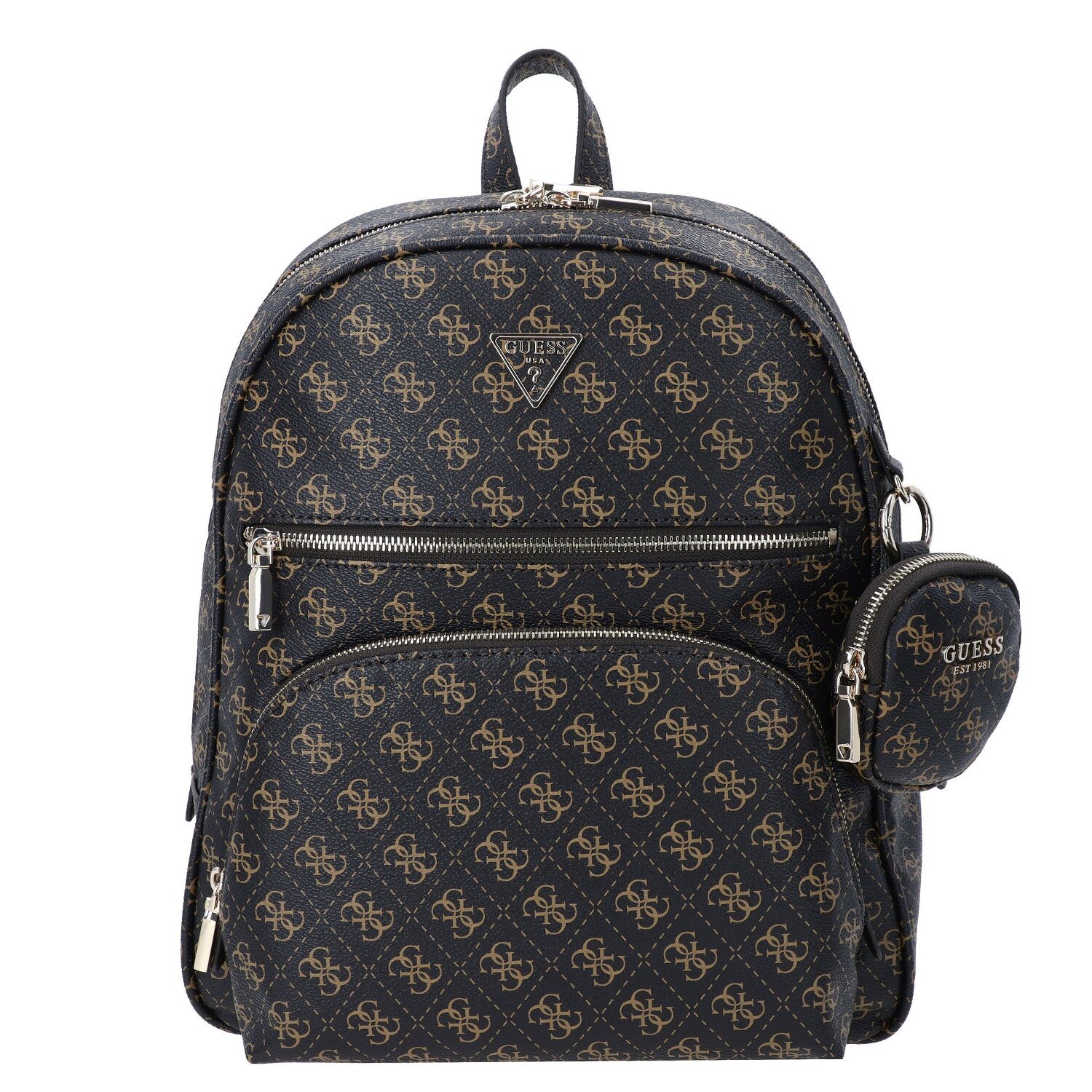 Nimm Platz in der Power Play II Liga mit unserem ultramodernen Daypacks Laptopfach-Rucksack von Guess! Dieser Rucksack bietet genügend Raum für all deine life essentials und mehr mit Staumöglichkeiten wie dem Außen- und Innen-Reißverschlussfach und praktischen Kreditkartenfächern. Dank der Trolley-Kupplung bist du auch auf Reisen immer gut ausgerüstet. Der Rucksack ist aus widerstandsfähigem Polyurethan gefertigt, das jeden Outdoor-Trip mitmacht und auch im Großstadtdschungel eine gute Figur macht. Das 35-cm-Laptopfach und Stiftelaschen runden den Allrounder ab. Mit leicht zugänglichem Reißverschluss! Hol dir deinen Guess Power Play II und mach den Alltag zu deinem Spielplatz!