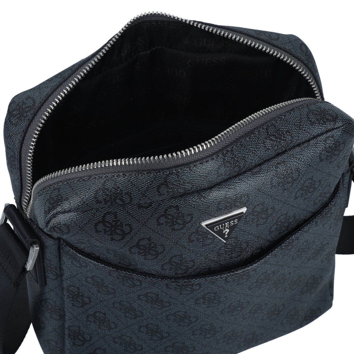 Mit der Guess Torino Umhängetasche für Herren erregen Sie Aufmerksamkeit und unterstreichen stilvoll Ihr Outfit. Dieses ausgezeichnete Stück, aus beständigem Polyurethan gefertigt, besticht durch seine robuste Haptik und langlebige Ästhetik. Praktische Details wie außen- und innenliegende Taschen sowie ein komfortabel zu bedienendes Reißverschlussfach bieten ausreichend Stauraum für Ihre Essentials. Das Highlight stellt der customizable Umhängeriemen dar. Dank der variablen Länge lässt er sich perfekt an Ihrer Statur ausrichten und gewährleistet höchsten Tragekomfort. Nutzen Sie die Gelegenheit und ergänzen Sie Ihre Garderobe mit der Guess Torino Umhängetasche.