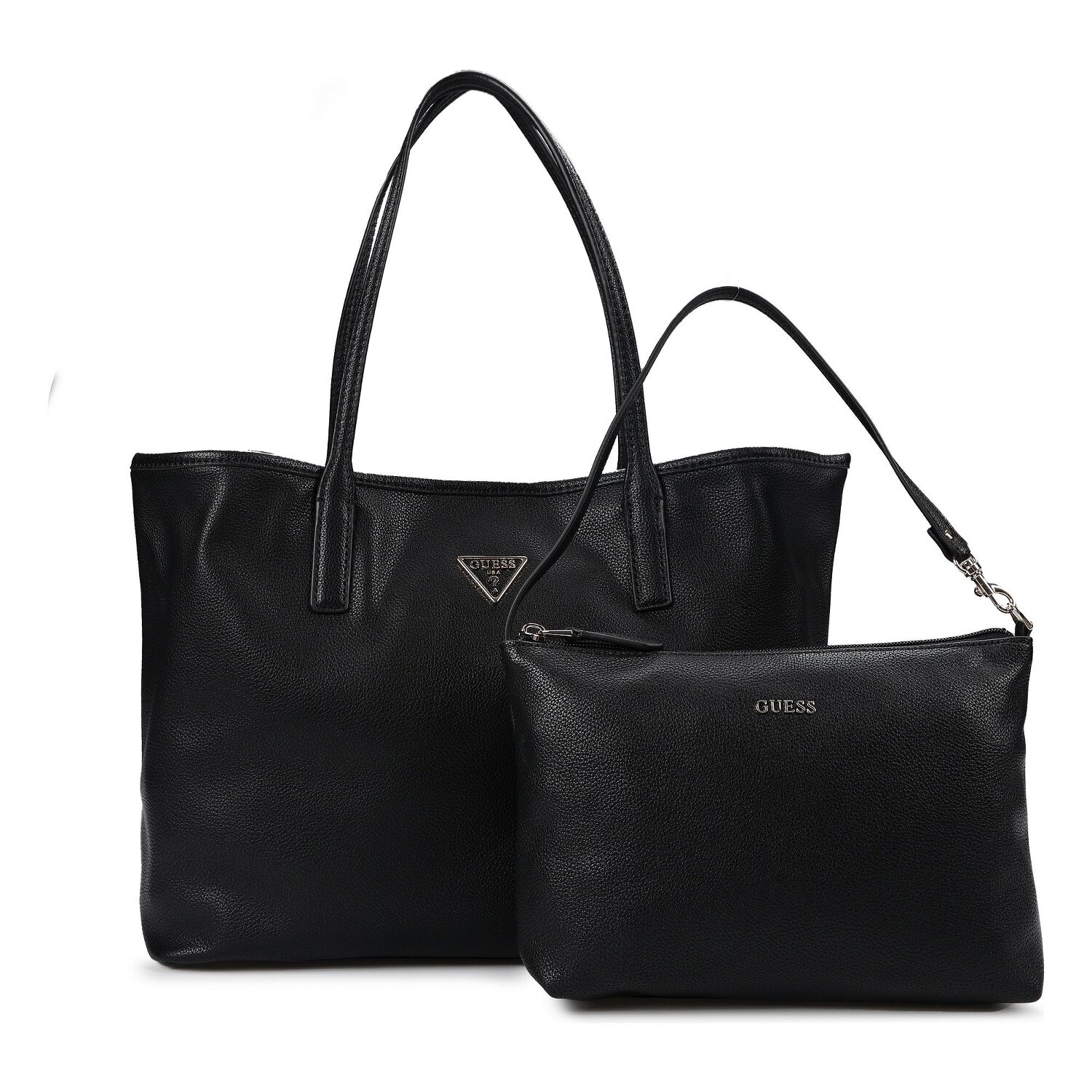 Zeitgenössisches Design trifft auf Funktionalität in der Shoppertasche 'Victtoria' von Guess. Den modernen Bedürfnissen der Damenwelt perfekt angepasst, bietet dieses Prachtstück viel Raum und eine herausnehmbare Innentasche - optimal für den Alltagsgebrauch. Der leichte, aber robuste Polyurethanstoff trotzt dabei jedem Wetter. Seinen Namen verdankt das Accessoire den Bodennägeln, die dem Design einen raffinierten Twist verleihen. Praktisch zudem der Magnetverschluss, der einen schnellen Zugriff auf den Inhalt erlaubt. Mit dem mittellangen Schulterband und dem zusätzlichen Umhängeriemen, freuen Sie sich auf vielfältige Tragemöglichkeiten. Holen Sie sich die 'Victtoria' und steigern Sie die Effektivität Ihres Alltagsstils.