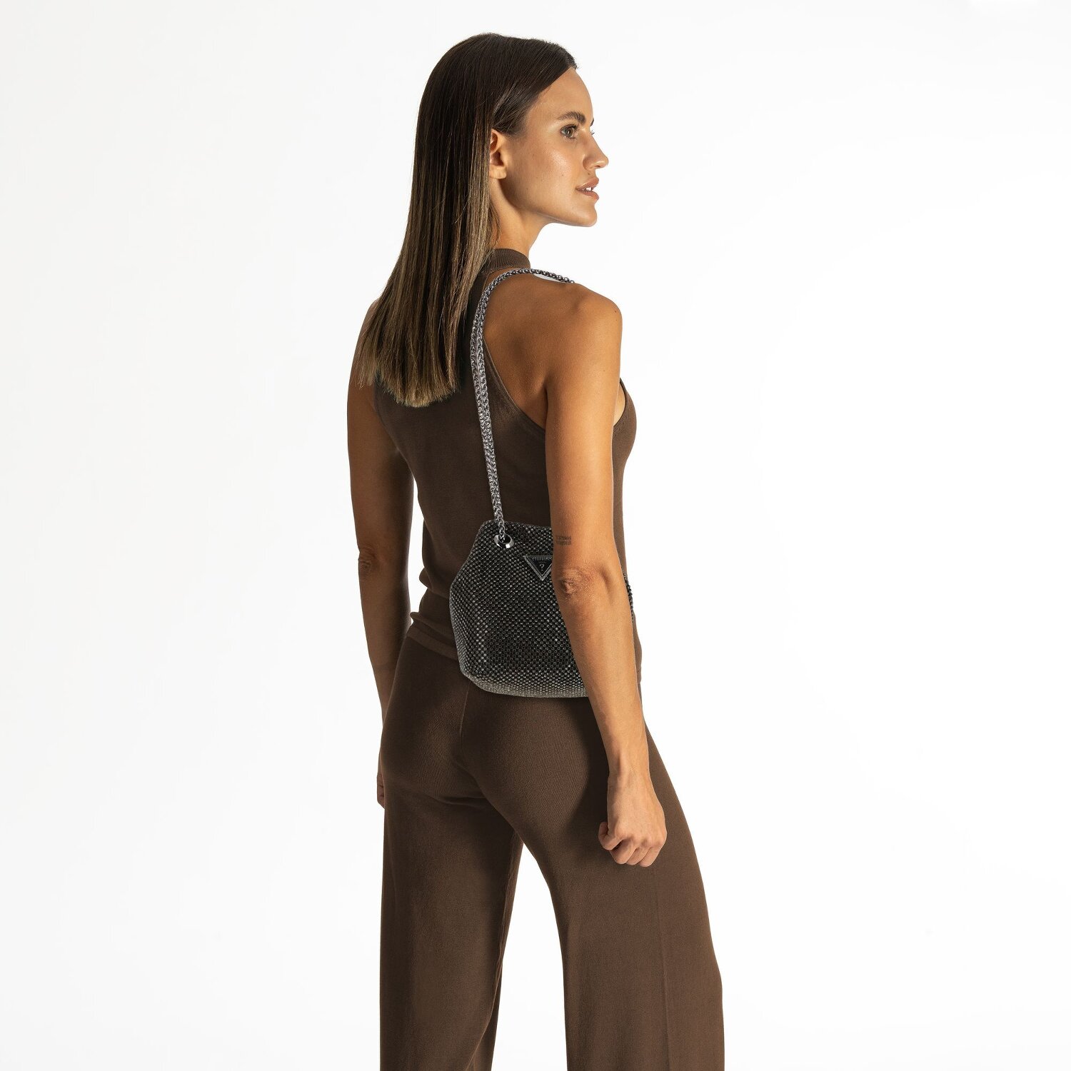Tauchen Sie ein in die Welt eleganter Accessoires mit der Guess Zalina-Beuteltasche. Diese attraktiv gearbeitete Tasche aus robustem, schimmerndem Aluminium ist ein echtes Highlight für den täglichen Gebrauch, kombiniert mit einer hochwertigen Verarbeitung und starkem Material.