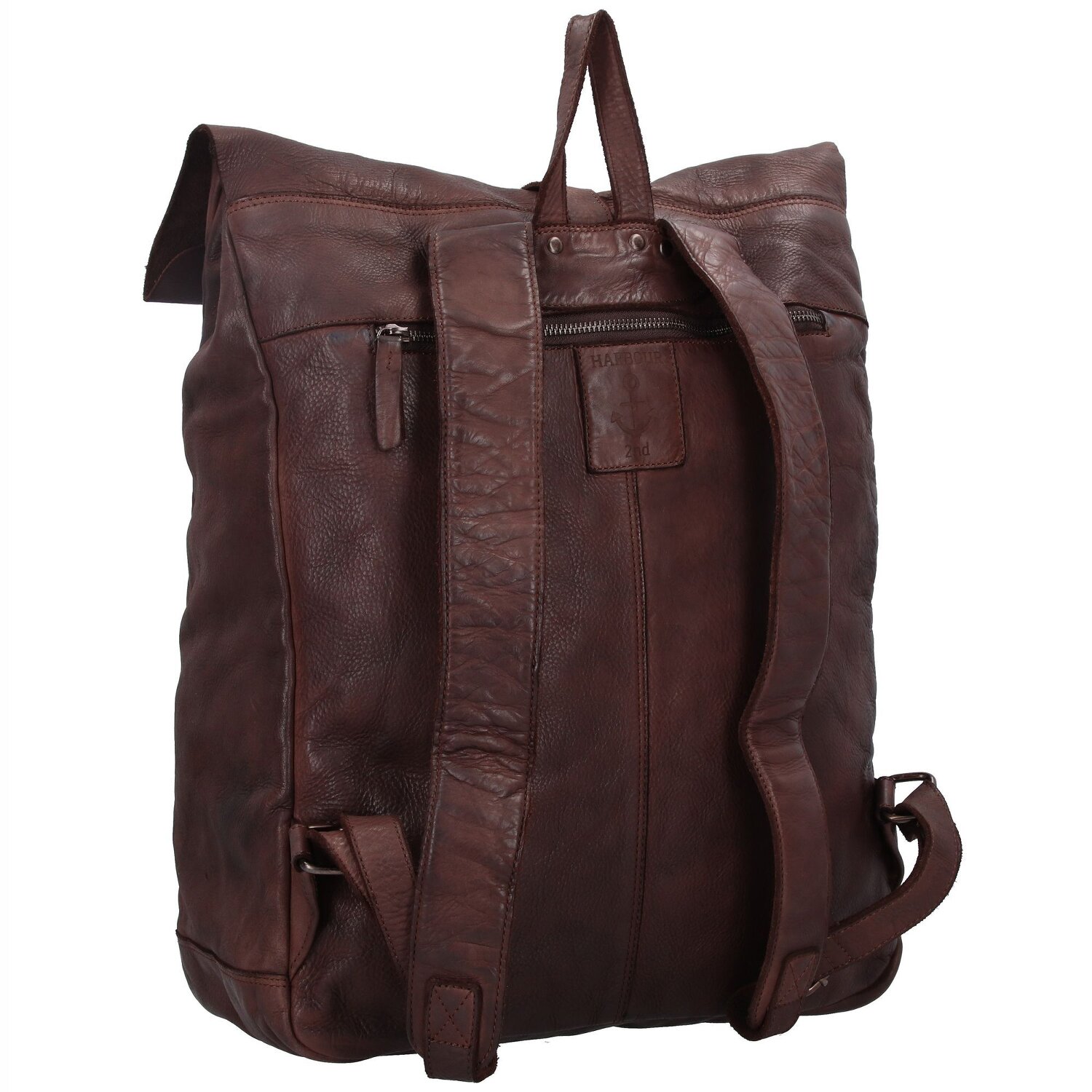 Edler Rucksack der Marke Harbour 2nd aus hochwertigem Leder. Im Inneren und auf der Rückseite befinden sich Reißverschlussfächer, so können Sie kleinere Gegenstände gut organisiert und sicher aufbewahren. Der perfekte Begleiter auf dem Weg zur Arbeit.
