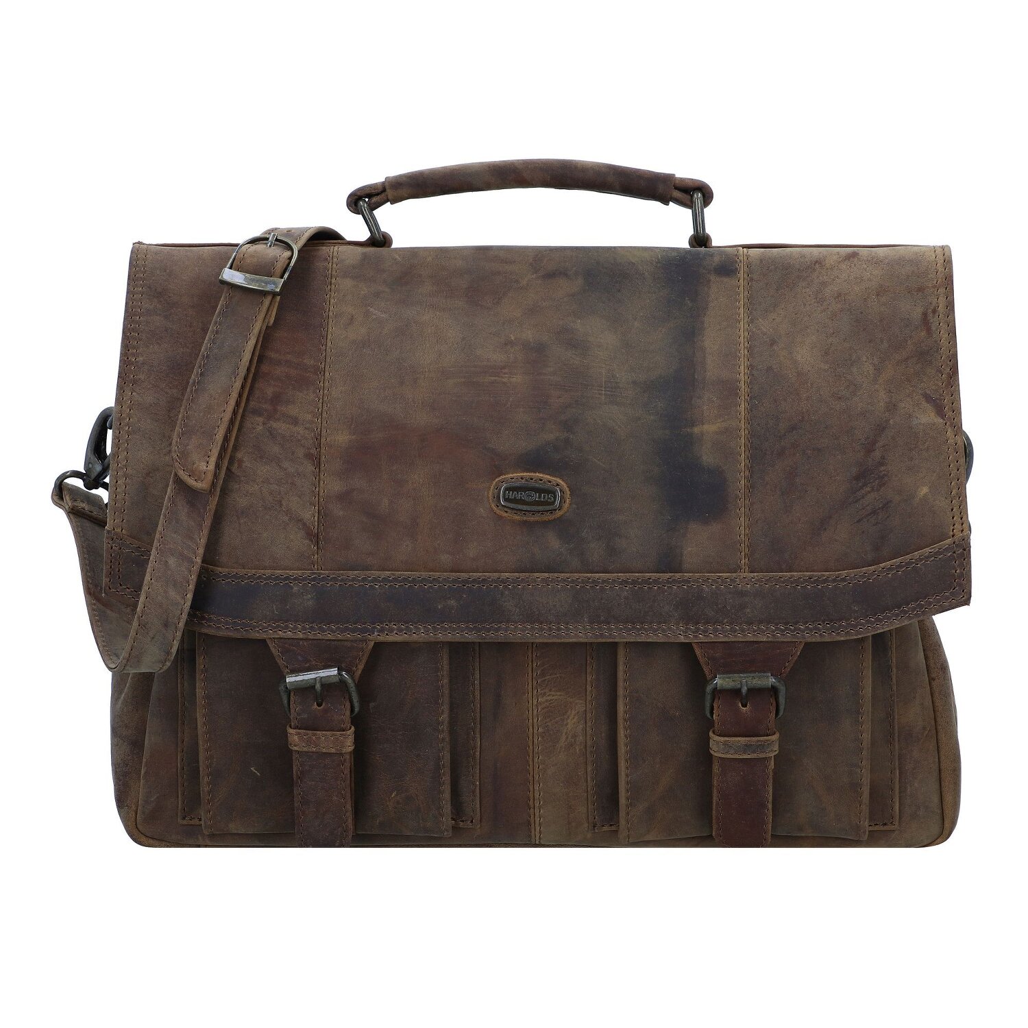 Praktische Aktentasche von Harolds aus pflanzlich gegerbtem Leder mit der markanten Optik und dem ganz besonderem Tragegefühl. Das Hauptfach bietet jede menge Stauraum für die Kleinigkeiten des Alltags und dank den zahlreichen Nebenfächern behalten sie immer die Übersicht. Ihr neuer Begleiter für die Strapazen des Alltags.