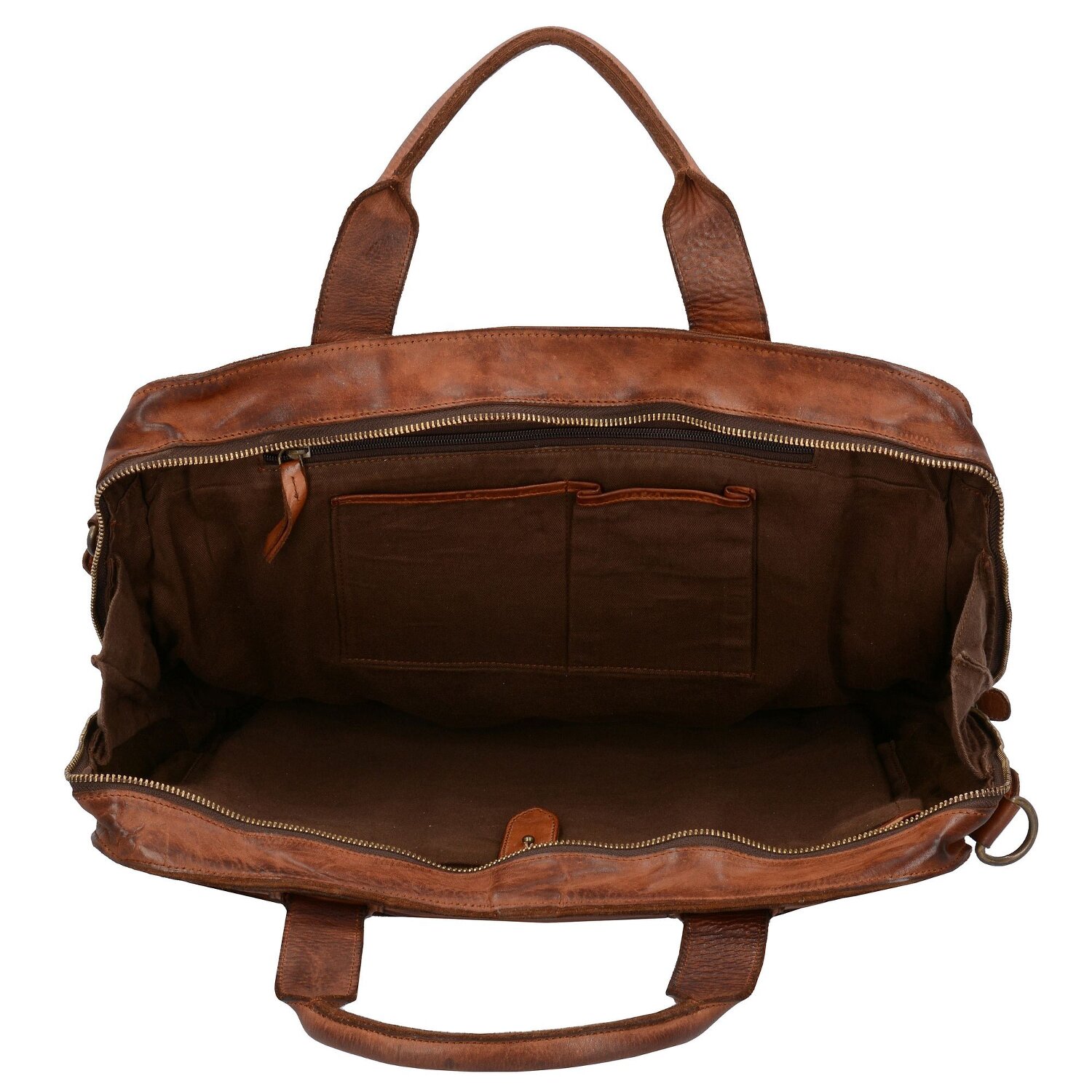 Hochwertige Businesstasche aus hochwertigem, pflanzlich gegerbtem Leder mit der markanten Optik und dem ganz besonderem Tragegefühl. Die Tasche besticht durch ihre hohe Verarbeitungsqualität und Funktionalität. Sie verfügt über ein geräumiges Hauptfach, zwei weitere Fächer auf der Vorder- und Rückseite, ein Laptopfach, ein Handyfach sowie ein Reißverschlussfach im Innern zur sicheren Aufbewahrung von Wertsachen.