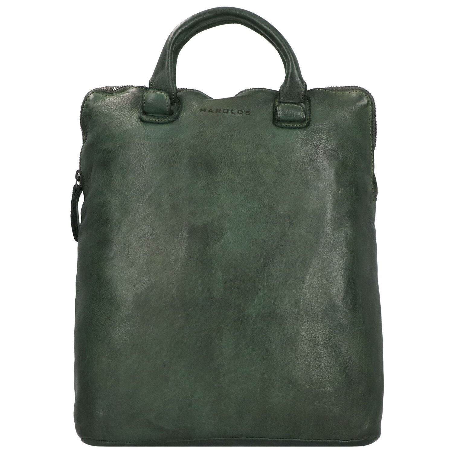Hochwertiger City Rucksack der Serie Submarine von Harold's Die pflanzliche Gerbung verleiht der Tasche ihre Markante Haptik und ihr Typisches Aussehen, mit einem Laptopfach und längenverstellbaren Rucksackgurten, die zum Umhängeriemen umfunktioniert werden können. Die Taschen dieser Serie werden aus weichem Rindleder hergestellt und als fertig genähte Taschen gewaschen und erhalten dadurch ihren lässigen Look. Die leicht glänzende Oberfläche sowie die kleinen, goldenen Metallnieten und Verschlüsse verleihen zusätzlich Eleganz und ein edles Vintageaussehen.