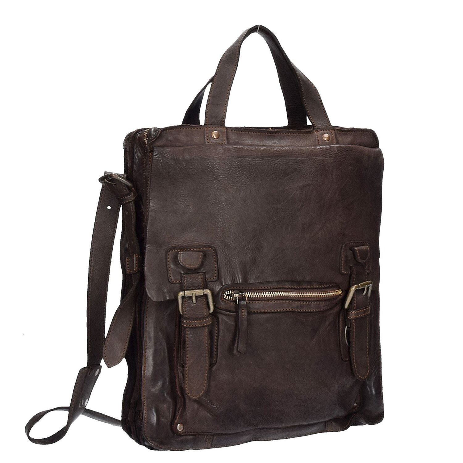 Harold's Submarine Henkeltasche aus Leder. Im geräumigen Hauptfach finden sich mehrere Steck- und Reißverschlussfächer. So finden alle Wertsachen und Alltagsgegenstände problemlos Platz. Die besondere Vintage-Oberfläche der Tasche entsteht durch die Waschung der kompletten Tasche nach der Herstellung, sowie der Gerbung mit rein Pflanzlichen Stoffen. So erhält die Tasche ihre markante Haptik und ihr typisches Aussehen.