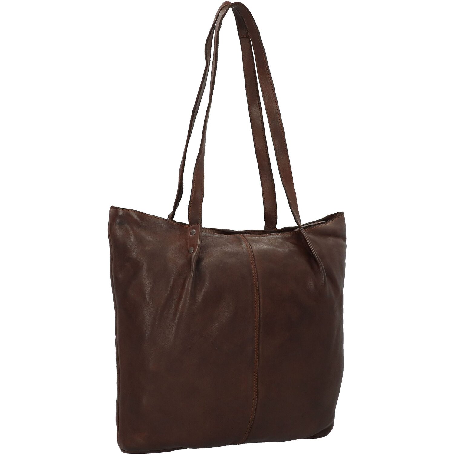 Hochwertige Shopper Tasche der Serie Submarine von Harold's mit durchdachter Innenaufteilung. Die Taschen dieser Serie werden aus pflanzlich gegerbtem Leder mit der markanten Optik und dem ganz besonderem Tragegefühl hergestellt und als fertig genähte Taschen gewaschen und erhalten dadurch ihren lässigen Look. Die leicht glänzende Oberfläche sowie die kleinen, goldenen Metallnieten und Verschlüsse verleihen zusätzlich Eleganz und ein edles Vintageaussehen.