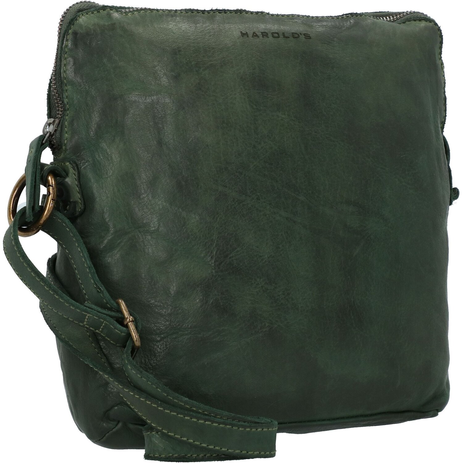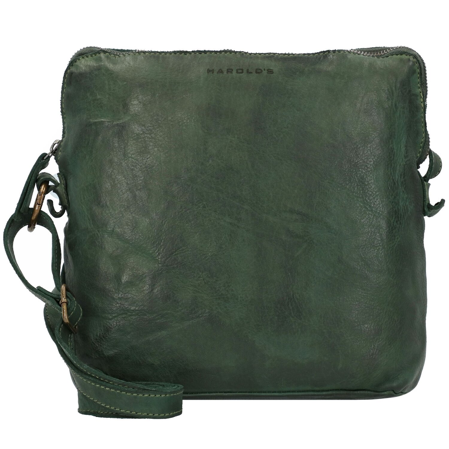 Hochwertige Umhängetasche der Serie Submarine von Harold's mit längenverstellbarem Umhängeriemen. Die Taschen dieser Serie werden aus pflanzlich gegerbtem Leder mit der markanten Optik und dem ganz besonderem Tragegefühl hergestellt und als fertig genähte Taschen gewaschen und erhalten dadurch ihren lässigen Look. Die leicht glänzende Oberfläche sowie die kleinen, goldenen Metallnieten und Verschlüsse verleihen zusätzlich Eleganz und ein edles Vintageaussehen.