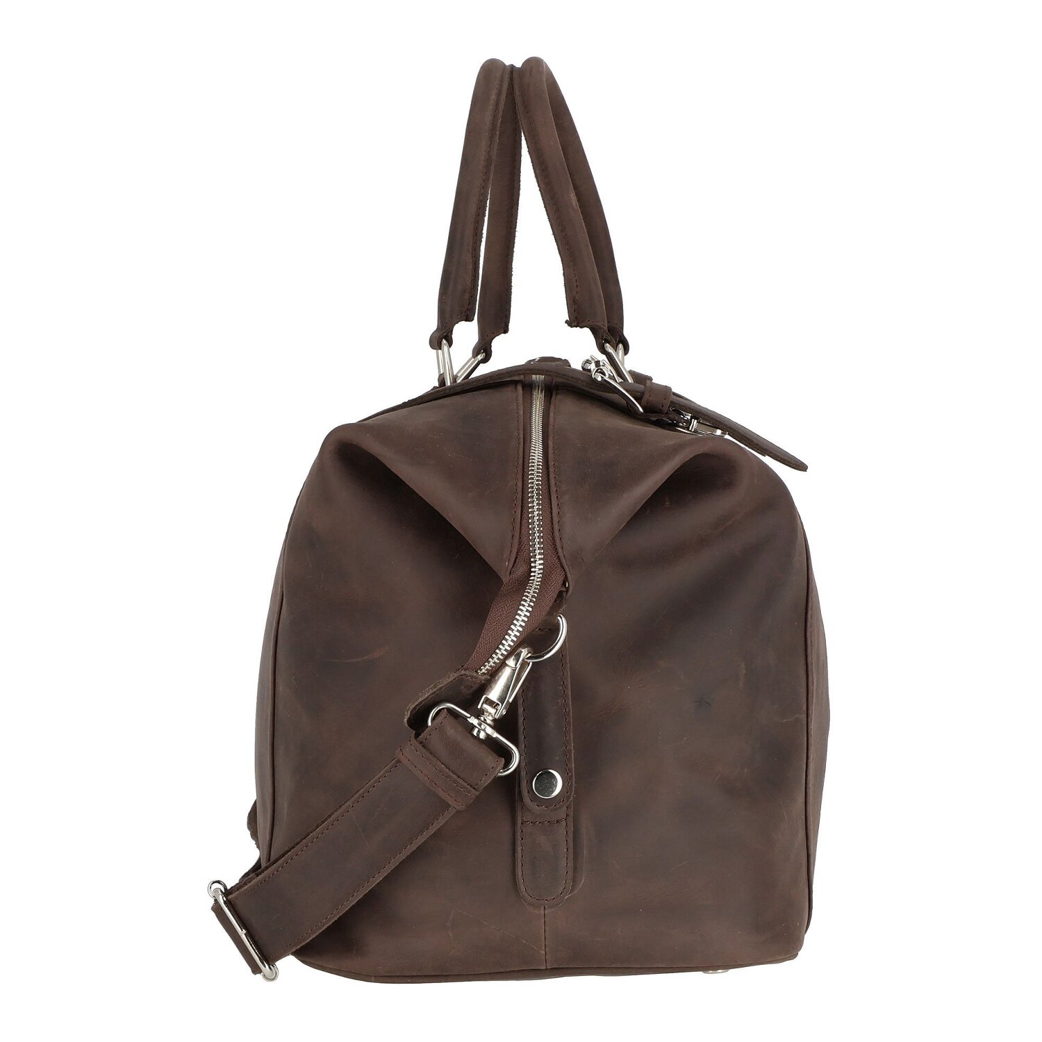 Entdecken Sie die luxuriöse Weekender Reisetasche von Harolds, aus hochwertigem, pflanzlich gegerbtem Leder mit der markanten Optik und dem ganz besonderem Tragegefühl. Mit einem großzügigen Innenraum inklusive Reißverschlussfach und Dehnfalte sowie einem verstellbaren Umhängeriemen bietet sie erstklassigen Stil und Komfort für Damen und Herren auf Reisen.