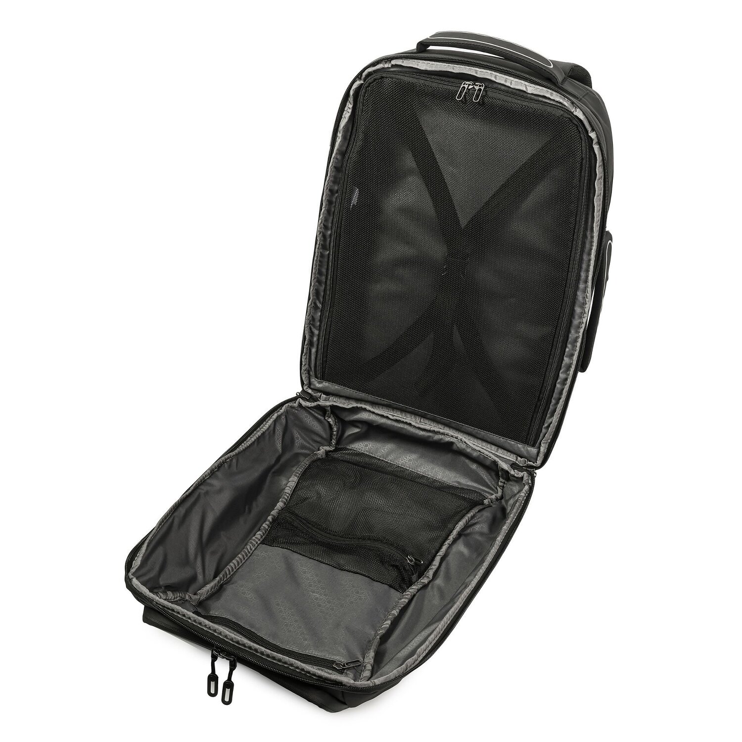 - Ausstattung: Tasche(n) innen, Tasche(n) außen, Reißverschlussfach, Handyfach, auf Trolley steckbar