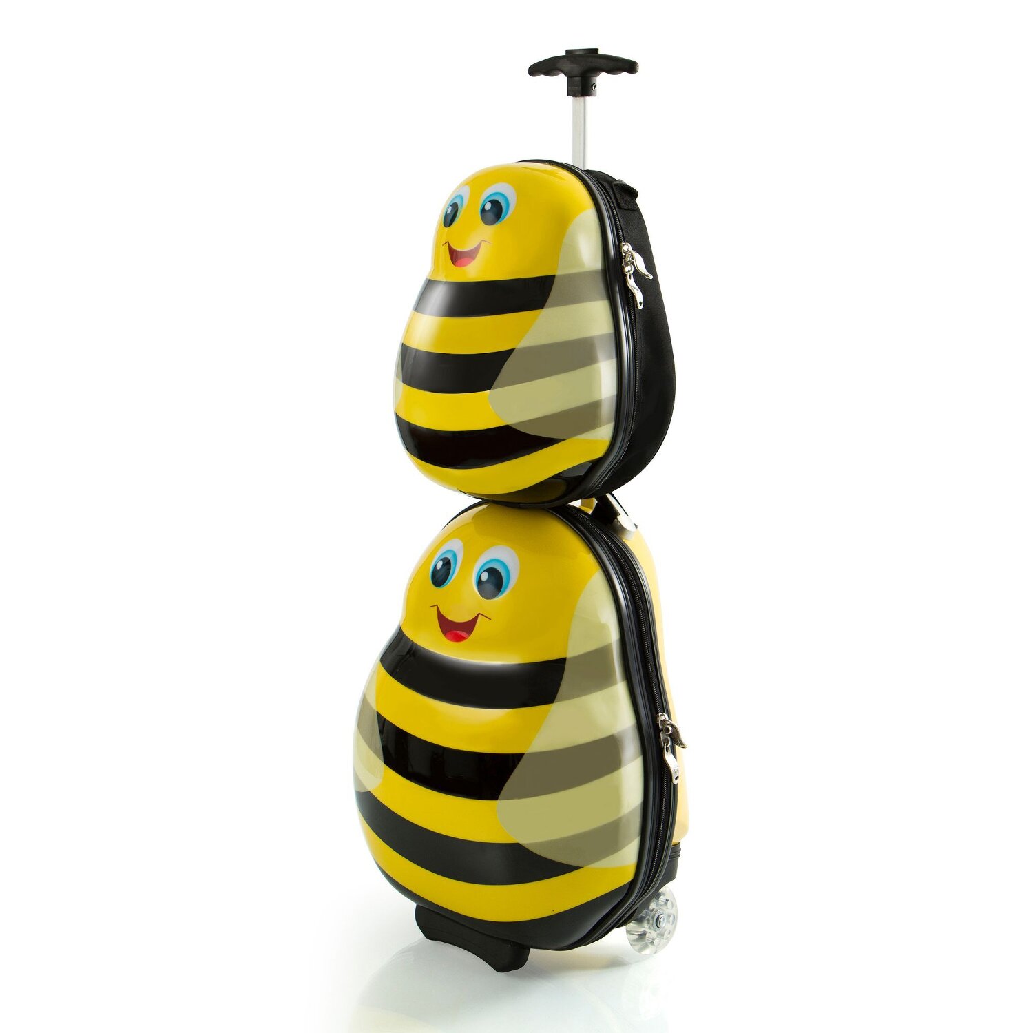 Mit Stolz präsentiert Heys aus seiner Kids Serie den farbenfrohen und robusten Trolley. Entwickelt um Kinderherzen höher schlagen zu lassen, kommt dieser mit einem nützlichen Kreuzpackgurt daher. Vollaromatisch präsentiert sich das verwendete Material: Polycarbonat. Unwiderstehlich in seiner Stärke und Fähigkeit, die täglichen Herausforderungen des Reisens zu überstehen. Ein herausstechendes Merkmal ist der praktische Tragegriff, designed für komfortables Tragen und problemloses Manövrieren. Ergänzt wird der Trolley von einem Rucksack mit Rückenpolster einem geräumigen Hauptfach und einem Praktischen Tragegriff mit dem der Rucksack auch auf den Koffer aufgesteckt werden kann. Machen sie ihrem Kind eine Freude mit seinem ersten Reisegepäck von Heys. Maße: 34 cm x 23 cm x 34 cm / 25 cm x 14 cm x 33 cm - Volumen: 19 L / 3 L - Gewicht: 0,5 kg / 1,6 kg