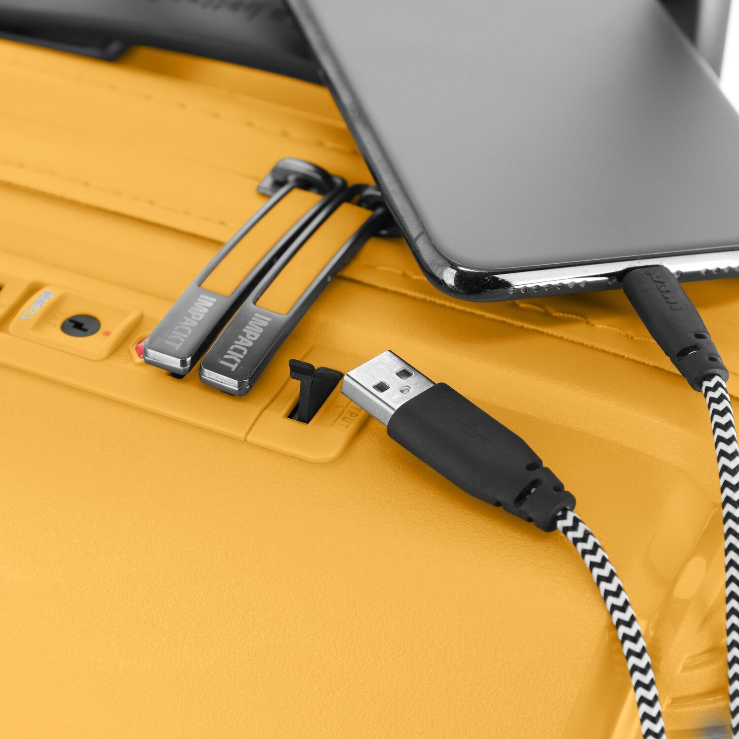 Designstarker, geräumiger Kabinentrolley von Impackt aus robustem Polypropylen mit vier stabilen Rollen, und seperaten Fächern im Innern. Der ideale, flexible Begleiter für den nächsten Urlaub.