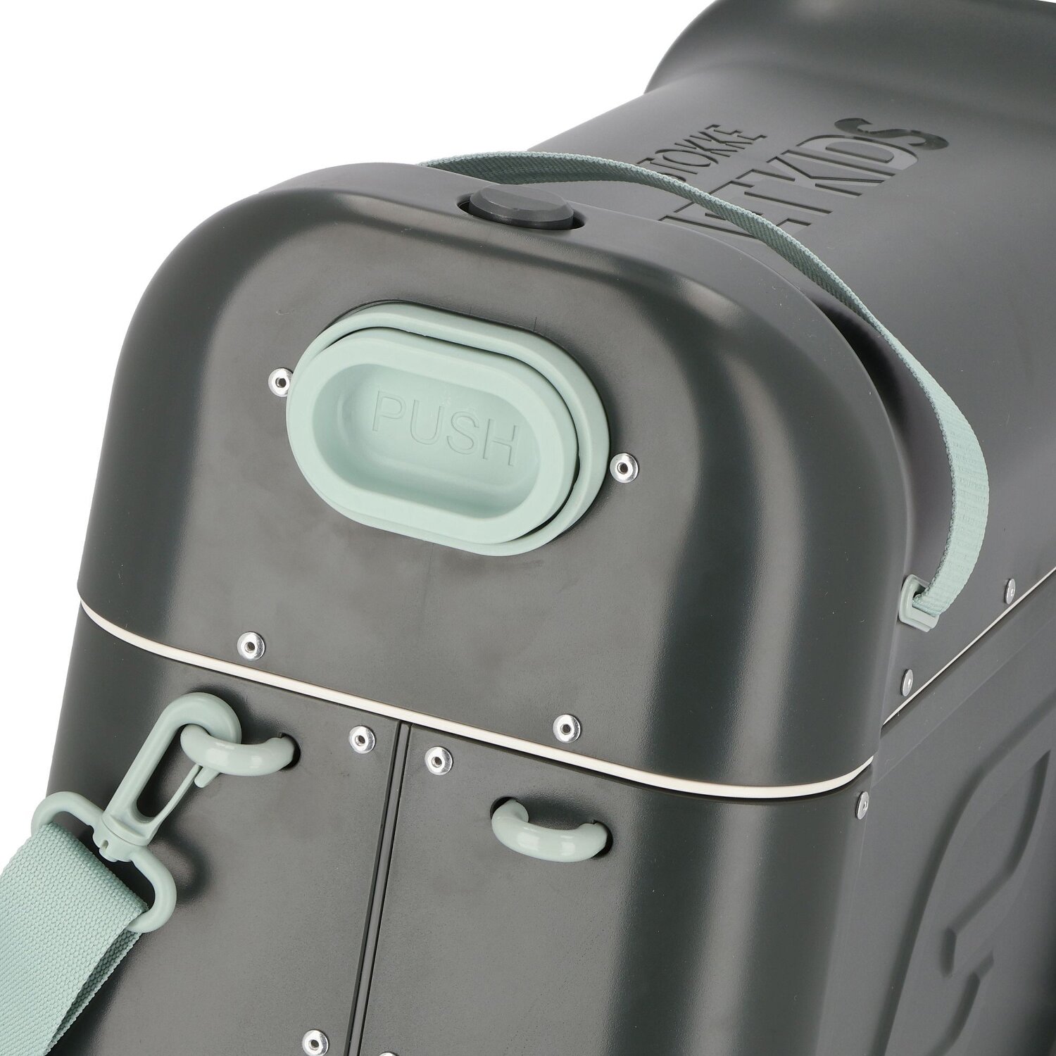 Ein geräumiger Aufsitzkoffer zum Ziehen, Sitzen oder selber Fahren. Mit integrierter Schlaffunktion dank des höhenverstellbaren Deckels und der beiliegenden Matratze. Mit schwenkbaren Vorderrädern und praktischer Schlaufe, damit sich das Kind während der Fahrt festhalten kann. Der verstellbare Riemen ermöglicht es, den Koffer über der Schulter zu tragen. Die praktische Öffnung, die als Sitzfläche dient, kann schnell abgenommen werden. Im Deckel versteckt sich noch ein Fach, in dem der Bezug für den Deckel und/oder andere Utensilien verstaut werden können, damit die wichtigsten Spiel- und Schlafutensilien immer leicht zugänglich sind. Für Kinder von 3-7 Jahren. Im Lieferumfang: BedBox Kindertrolley, Matratze mit Seitenkissen, verstellbarer Riemen zum Ziehen und Tragen, zwei Blätter mit dekorativen Aufklebern. Außenmaße: 46 cm x 20 cm x 36 cm / Gewicht: 3,30 kg / Volumen: 20 Liter
