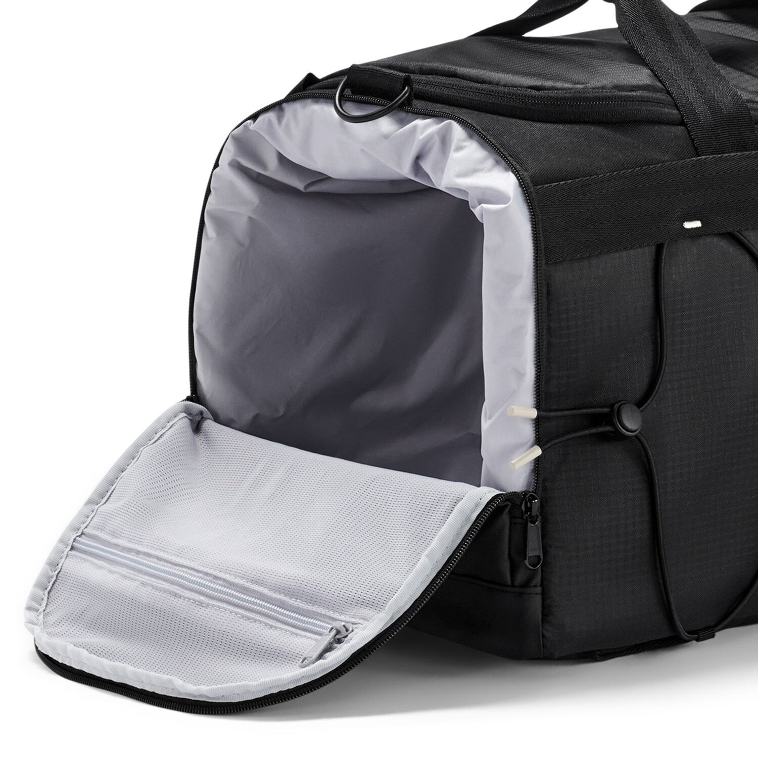 - Ausstattung: Tasche(n) innen, Tasche(n) außen, Rucksackfunktion, Reißverschlussfach, Netzfach, Kompressionsriemen, Ausrüstungsschlaufe