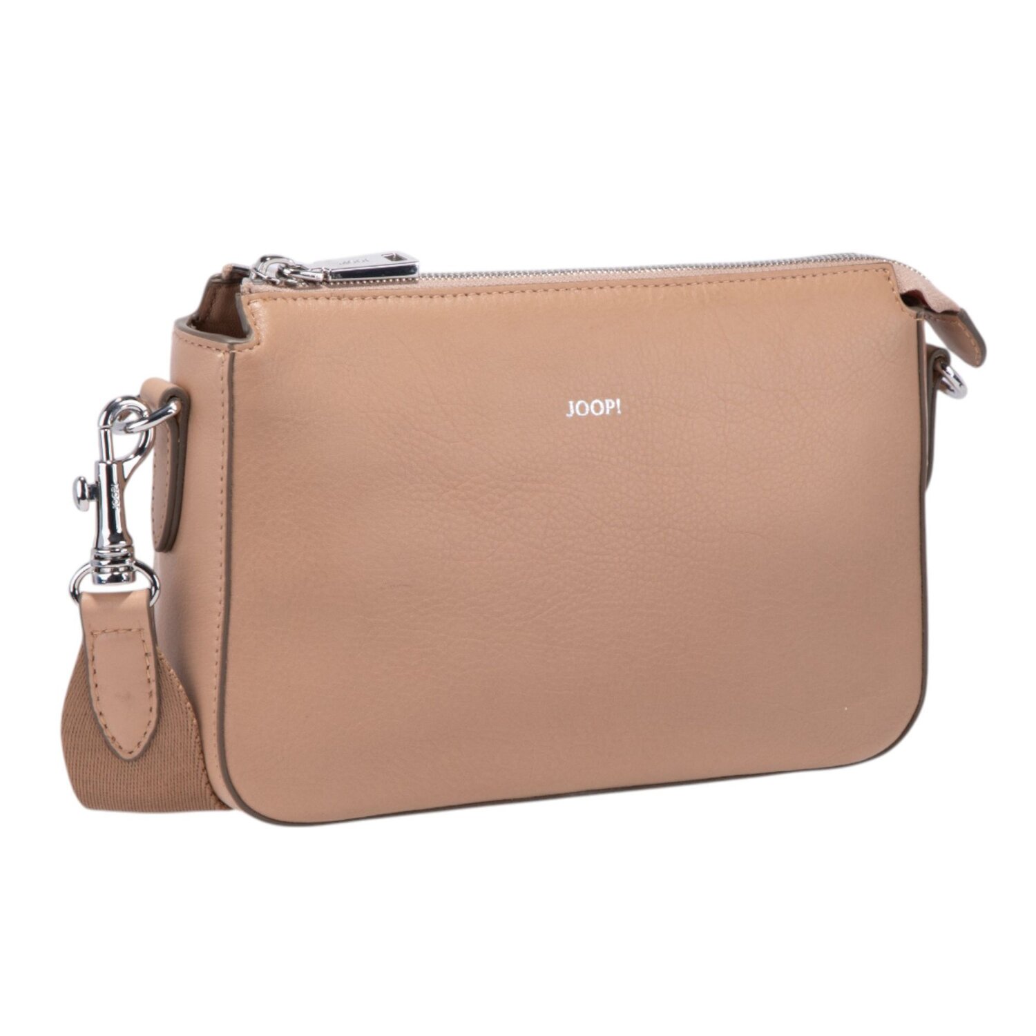 Elegante Umhängetasche von Joop! aus weichem Leder mit abnehmbarem, längenverstellbarem Umhängeriemen. Das Hauptfach bietet genug Platz für ihre Wertsachen und ist mit einem Reißverschlussfach und zwei Steckfächer ausgestattet.