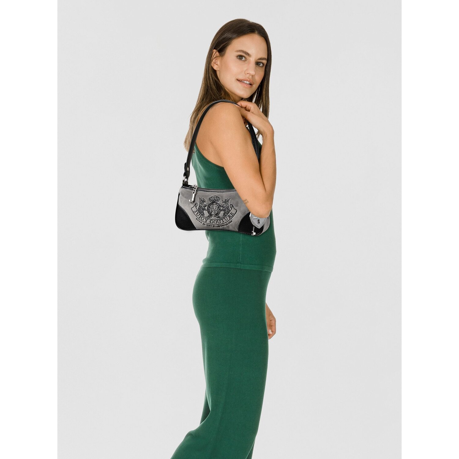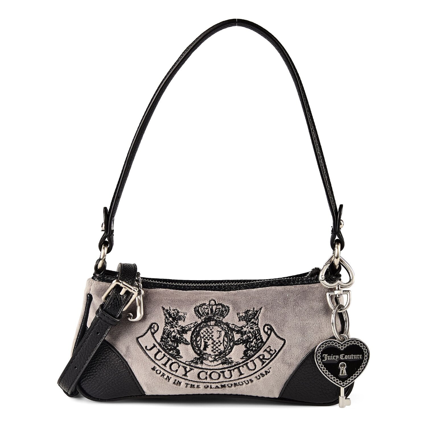 Juicy Couture's Daydreamer Schultertasche beeindruckt mit ihrer ausdrucksstarken Designästhetik, jenseits des Üblichen. Hergestellt im Stil der anspruchsvollen und stilbewussten Frau von heute, stellt sie eine Verschmelzung von Charme und innovativer Funktionalität dar. Das robuste Polyester Material verleiht ihr eine Haltbarkeit und Widerstandsfähigkeit, die sie zum idealen Begleiter im Alltag macht. Ein leicht zugänglicher und praktischer Reißverschluss sorgt für eine sichere Aufbewahrung Ihrer Habseligkeiten, während ein zusätzliches Reißverschlussfach bietet zusätzlichen Platz. Der abnehmbare, verstellbare Umhängeriemen, zusammen mit dem mittellangen Hauptgurt, bietet vielseitige Tragemöglichkeiten. Lassen Sie sich diese einzigartige Kreation von Juicy Couture nicht entgehen.