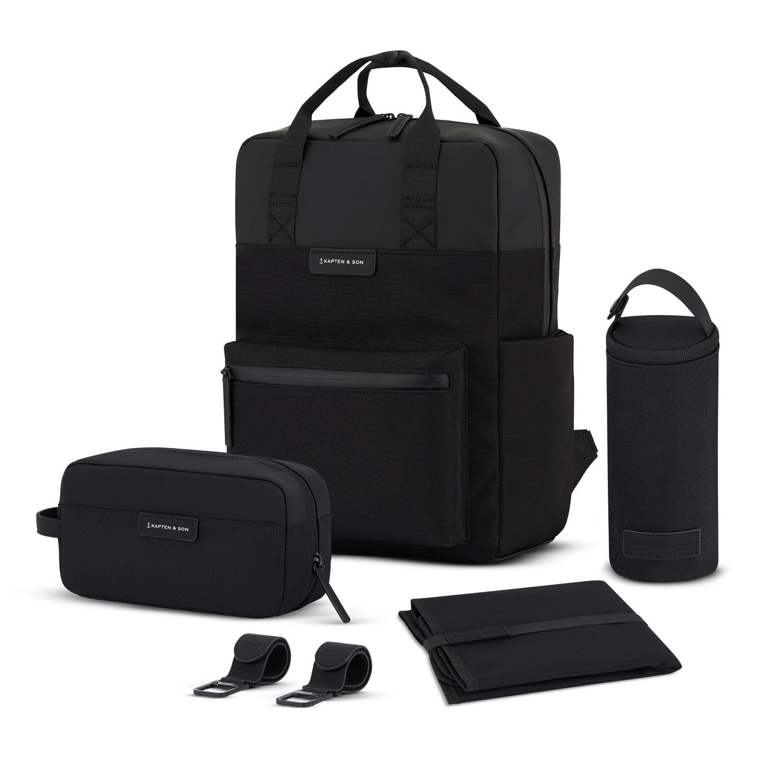 Jedes Teil des Sets ist mit dem dezenten Kapten & Son Schriftzug versehen – ein klares Statement für Qualität und Designbewusstsein. Die Reißverschlüsse sorgen für schnelles, sicheres Verschließen, während die flexible Aufteilung Eltern ermöglicht, alles Wichtige geordnet zu verstauen.