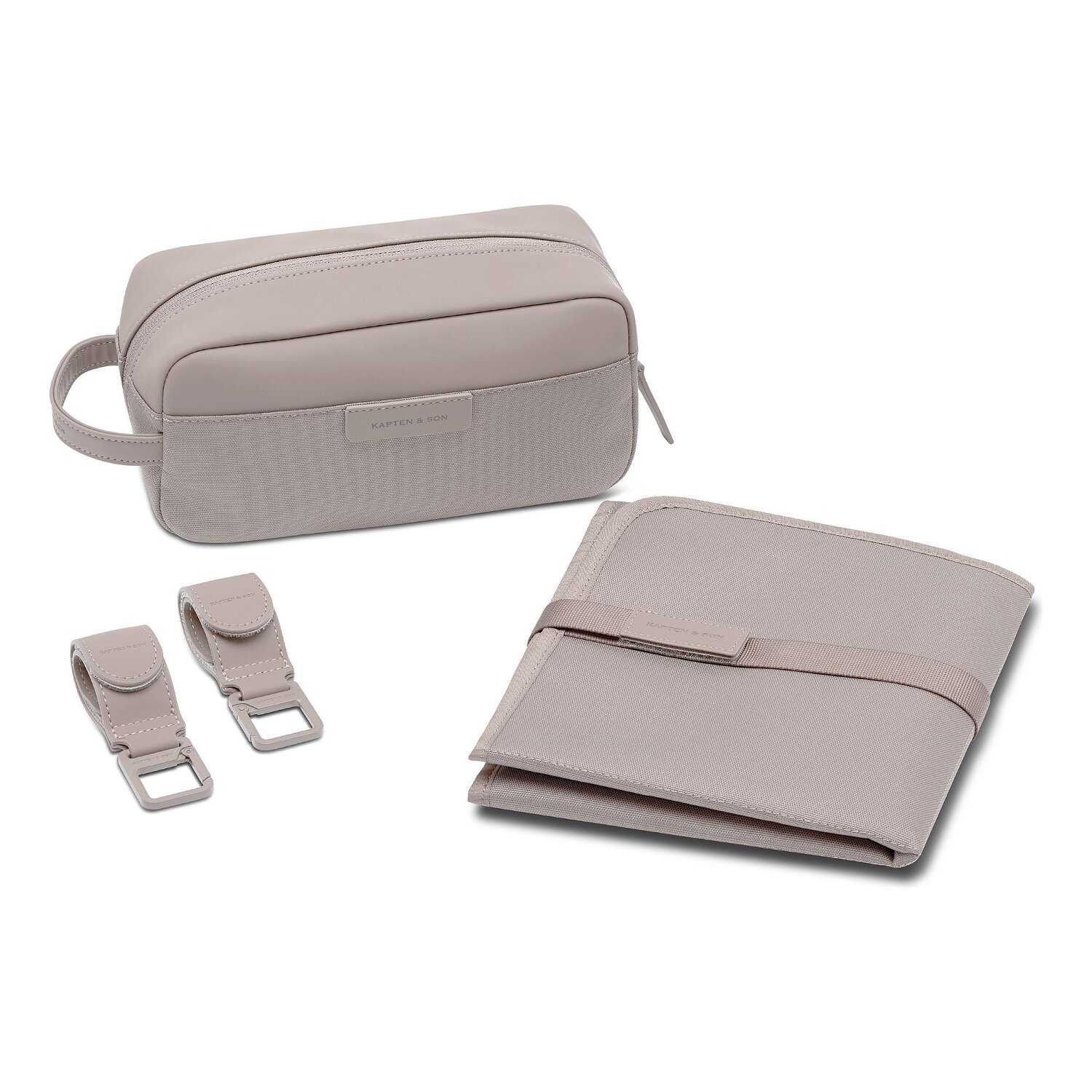 Mit dem Wickelset von Kapten & Son seid ihr unterwegs genauso entspannt wie zu Hause. Das Set besteht aus einer großzügigen Wickelunterlage (73 x 1 x 44,5 cm), einer kompakten Tasche (26 x 9 x 15 cm) und zwei praktischen Befestigungsriemen, mit denen sich alles sicher am Kinderwagengriff fixieren lässt. Die Tasche schließt zuverlässig per Reißverschluss, während sich die Unterlage einfach zusammenfalten und per Klettverschluss geschlossen halten lässt. Dezente Kapten & Son Schriftzüge auf Tasche und Verschluss setzen stilvolle Akzente. Das strapazierfähige Polyester macht das Set zum langlebigen, pflegeleichten Begleiter für euren Familienalltag.