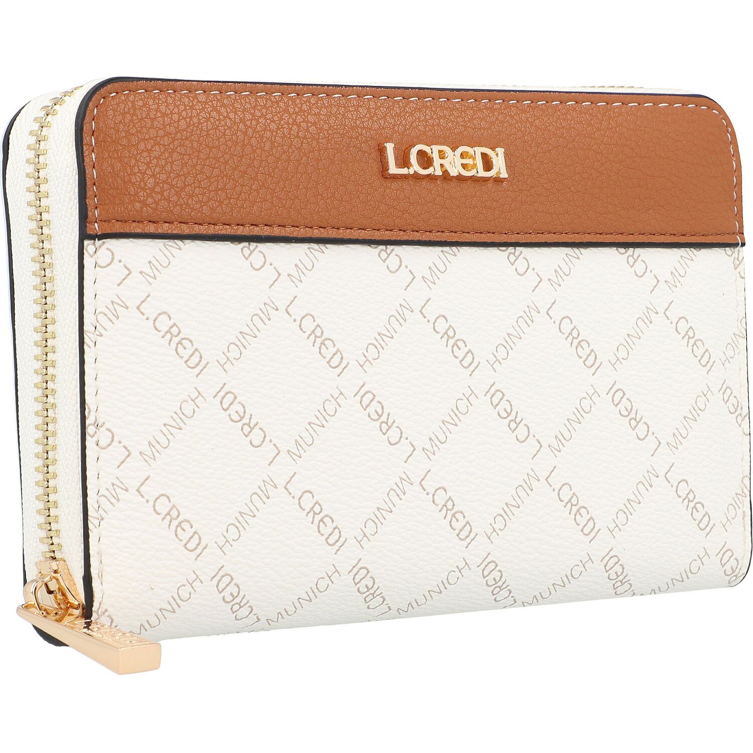 Trendige Geldbörse von L.Credi mit Allover-Logoprint bietet reichlich Platz für Kreditkarten, Scheine und Münzen. Der Geldbeutel ist aus robustem Kunstleder hergestellt und mit rückseitigem Reißverschlussfach ausgestattet. Der praktische und zugleich elegante Begleiter für jede Frau.